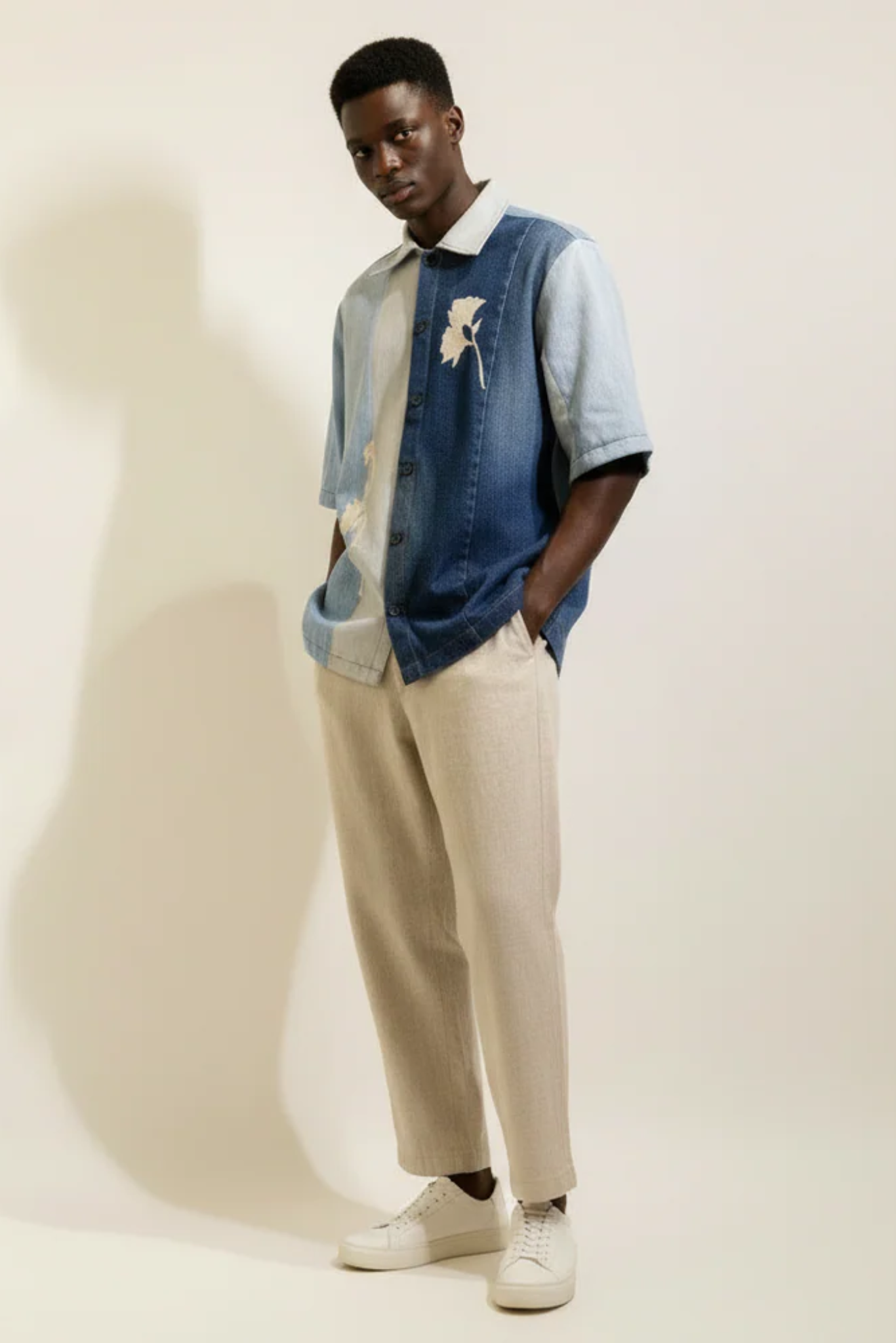 A statement of sustainable style, this shirt is crafted from upcycled post-consumer denim panels in varying shades of blue, creating a one-of-a-kind patchwork effect. Enhanced with delicate embroidery for subtle detailing, it blends artisanal craftsmanship with contemporary design. The relaxed silhouette and breathable denim make it perfect for a casual day out or effortless weekend styling.
