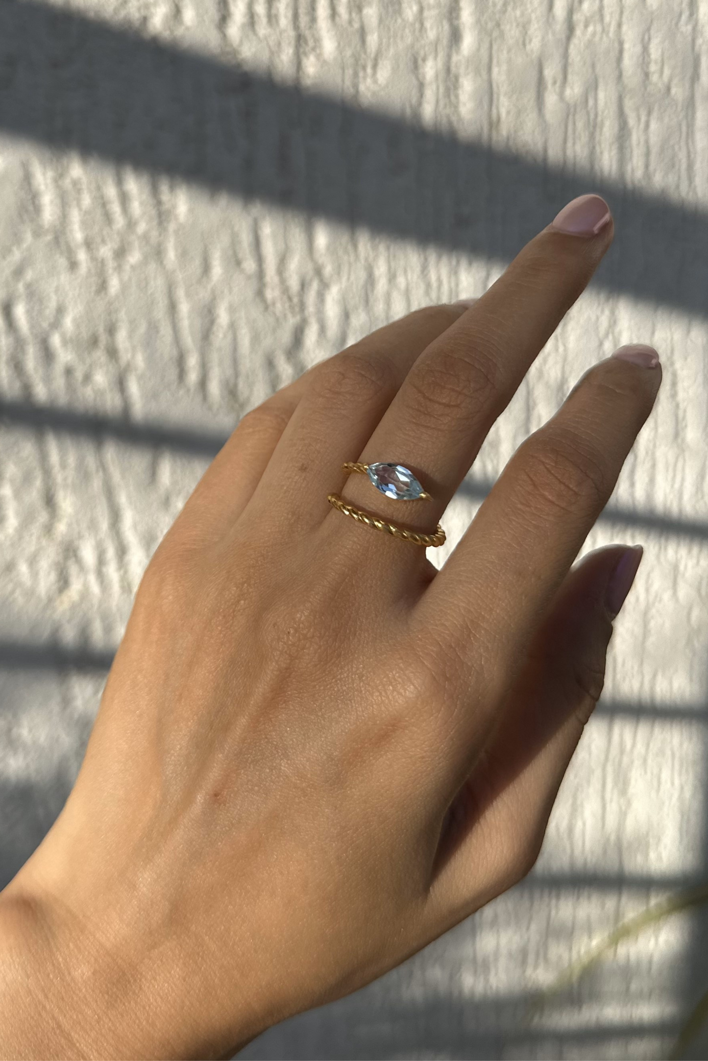 Metal: Made of 92.5 Fine Silver, Gold Plated (Hallmarked) Size: Adjustable Gemstone: Aquamarine