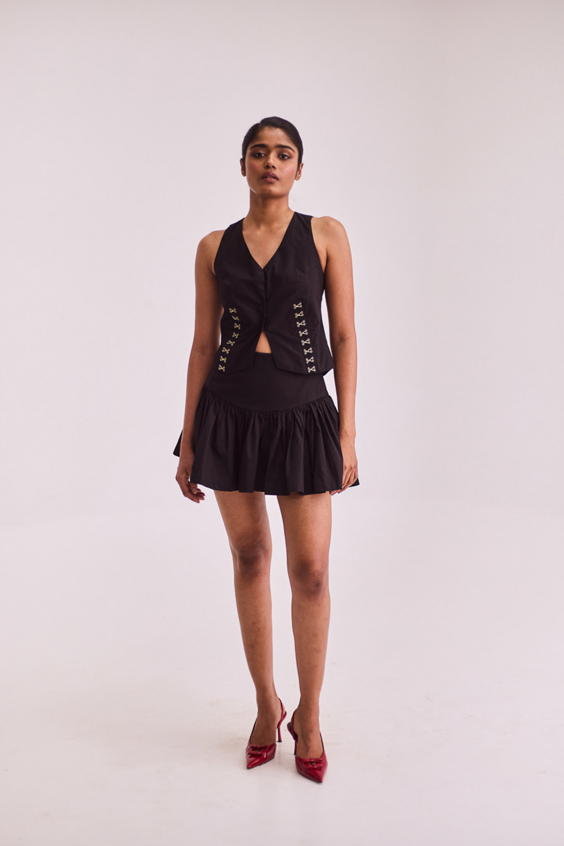 Embrace playful style with our Black Mini Bubble Skort, designed with a flattering bubble hem and a chic, versatile look. Perfect for casual outings or a fun day out, this skort combines the comfort of shorts with the stylish appeal of a skirt.