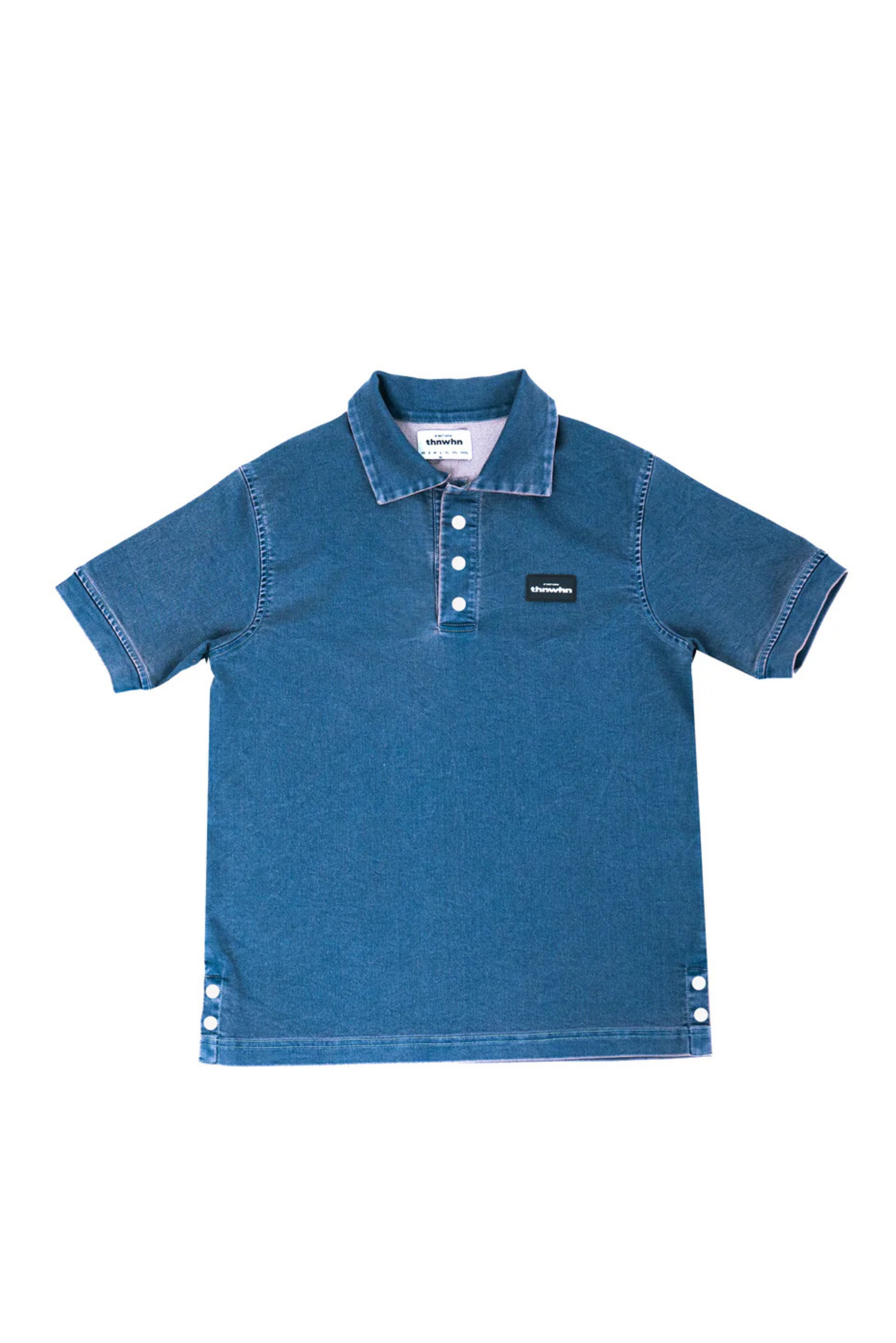 Shirt Product Description Made in a super comfortable knitted denim, this Polo T-shirt features a classic collar and cuff securing a sporty look. Fastened with premium snap button closures at neck as well along the side slits. Acid washed to give a unique rugged look in blue and subtle pink colour which makes this perfect for a summer vacation. Signature branding on chest Product Code PTTHN076