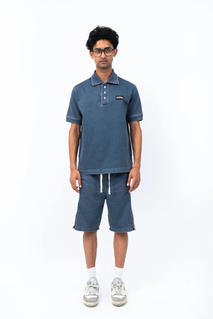 Short Product Description These shorts feature a riveting ombre dyeing technique, made in a super comfortable knitted denim fabric perfect for summer. A relaxed fit with two side pockets and two back pockets adds to the utility with signature branding at back pocket. Slits on the sides fastened with premium snap buttons. An elasticated waistband with drawstrings ensures comfort with functionality Product Code PTTHN077