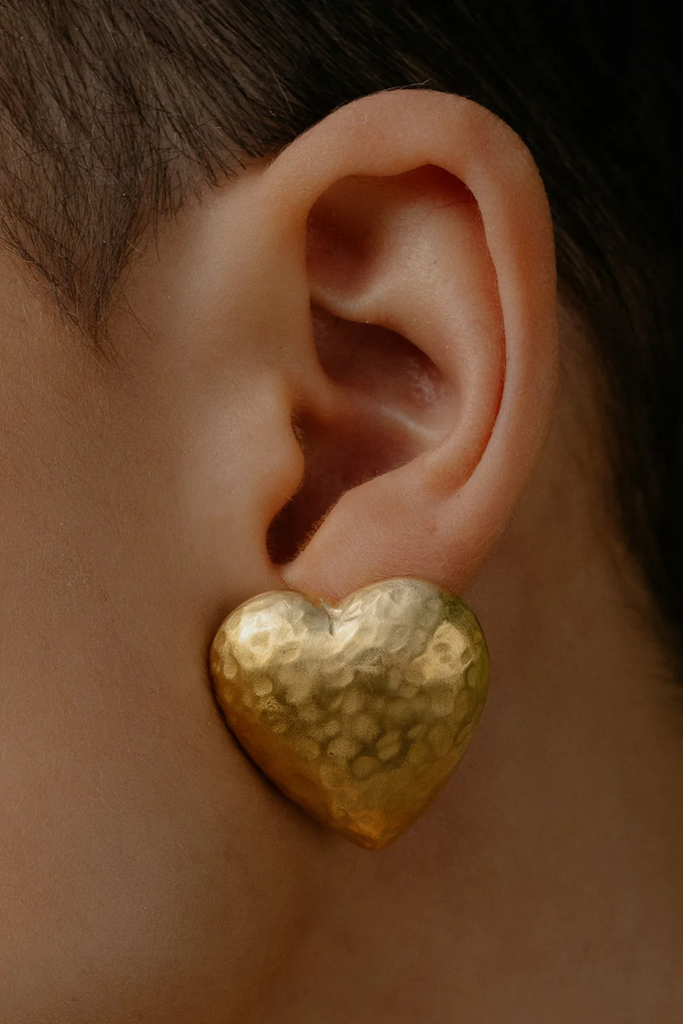 Add a touch of romance to your ensemble with our Chunky Textured Heart Studs, delicately plated in premium gold for a timeless and elegant look.