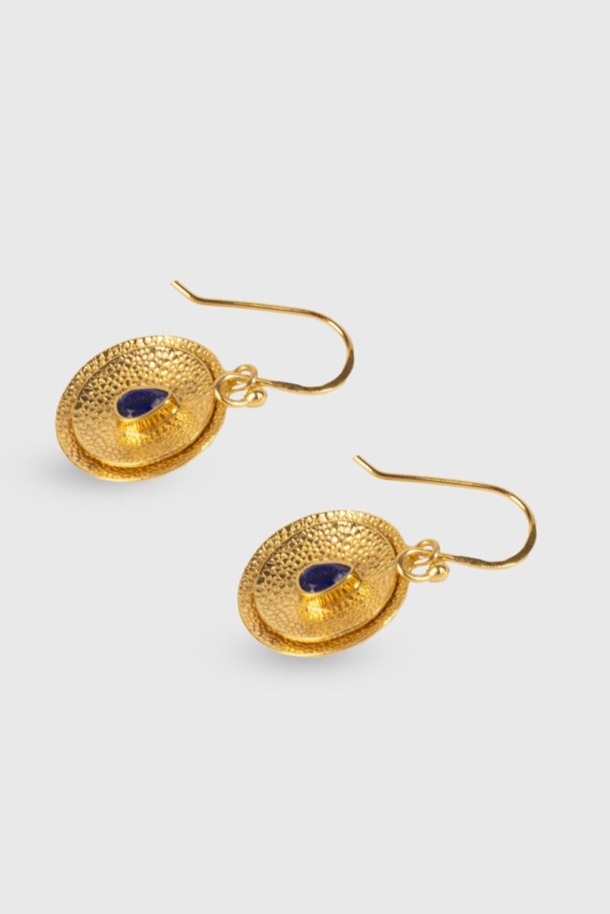 Product Description The Cirkel Earrings are your everyday chic jewelry that can be styled with both formal and casual outfits. Inspired by the Aegean World it has a beautiful texture and a Lapis Lazuli pear at the center. You can make it a full set with the Cirkel Ring!