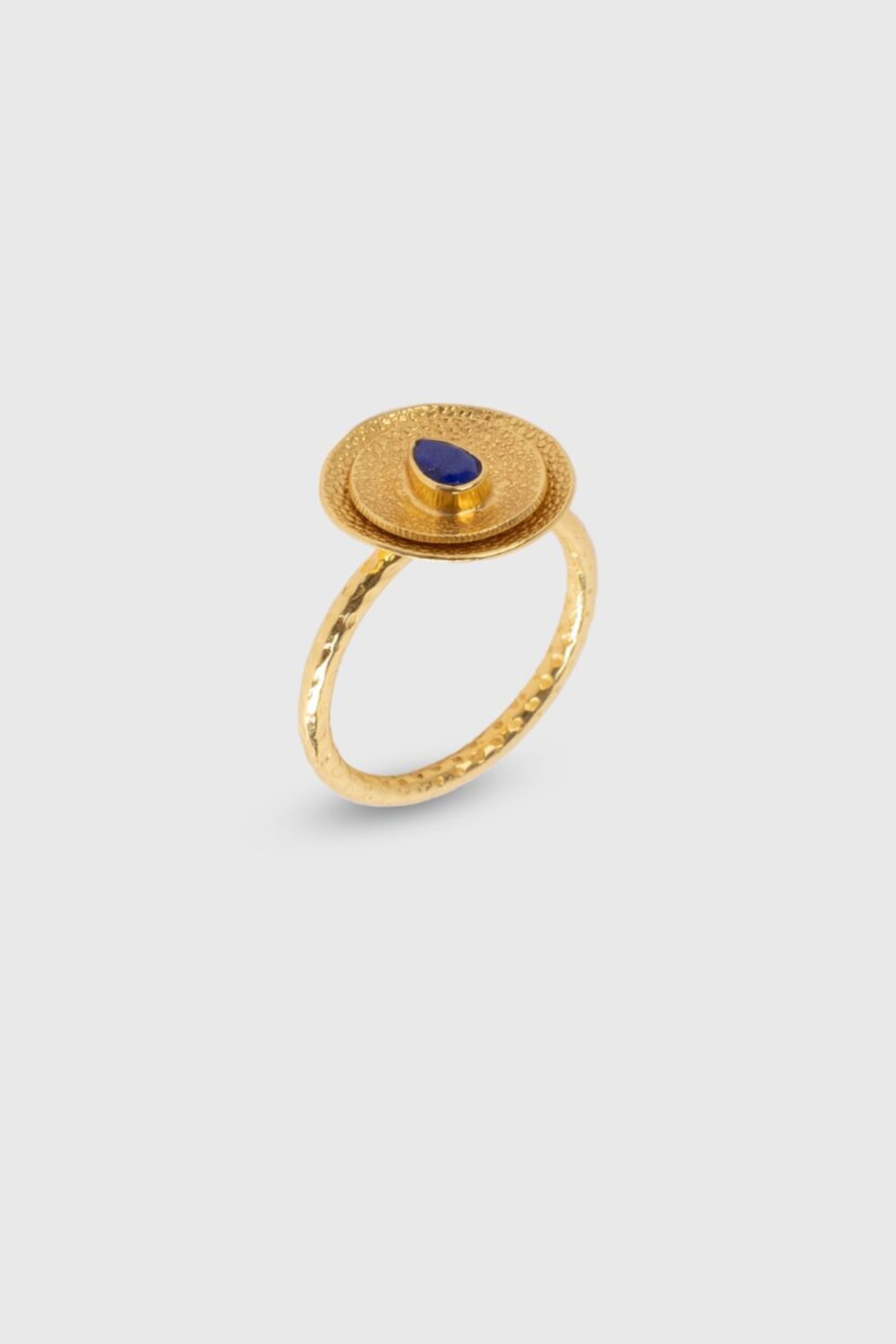 Description The Cirkel Ring is your everyday chic design that can be styled with both formal and casual attire. Inspired by the Aegean world it has a beautiful texture and a Lapis Lazuli pear at the center. You can make it a full set with the Cirkel Earrings!