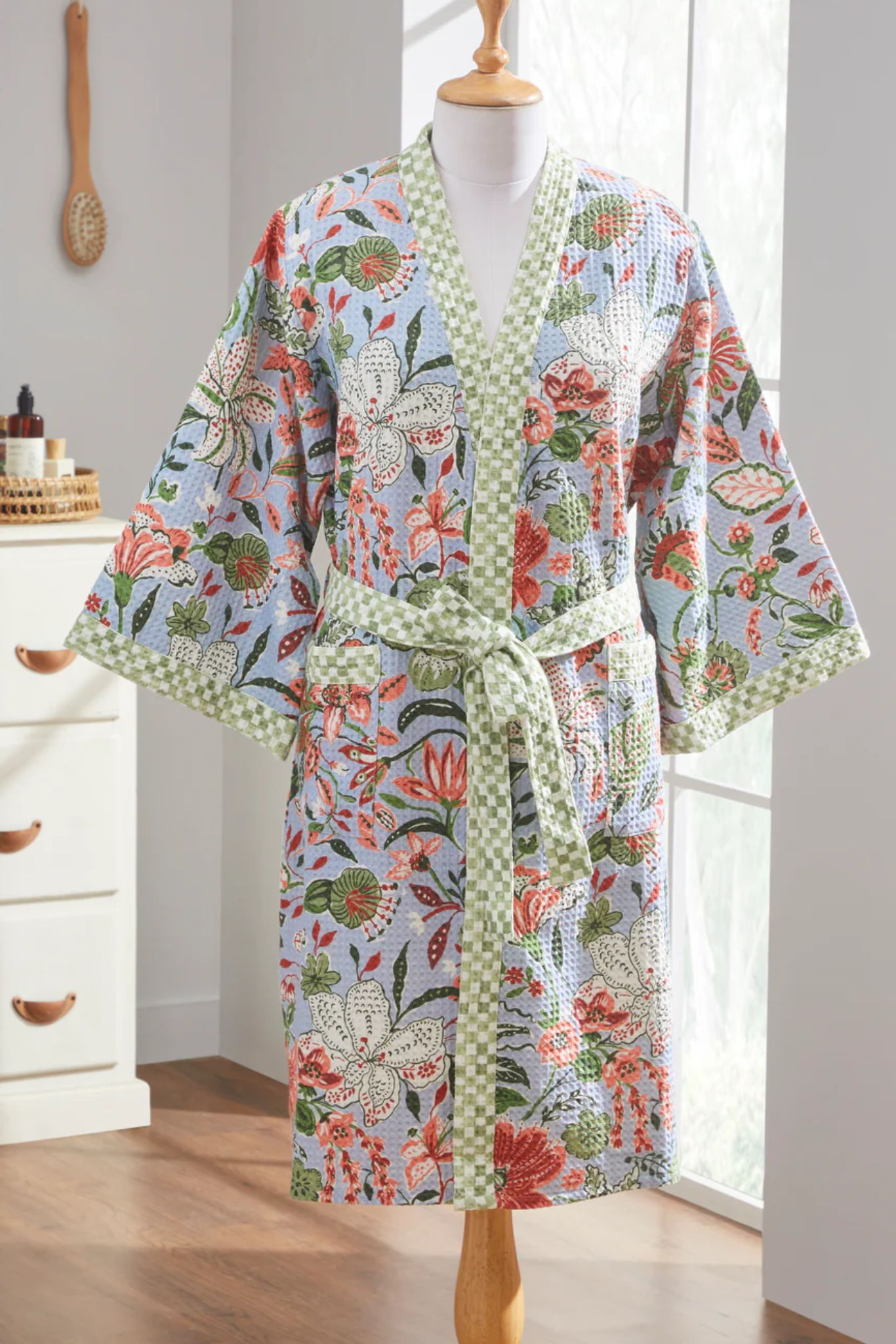 Indulge in the perfect blend of style and comfort with our printed cotton waffle bathrobe. Crafted from 100% natural cotton, this bathrobe wraps you in softness, making every day feel like a spa day. Lightweight and quick-drying, it’s ideal for lounging or after-bath relaxation.
