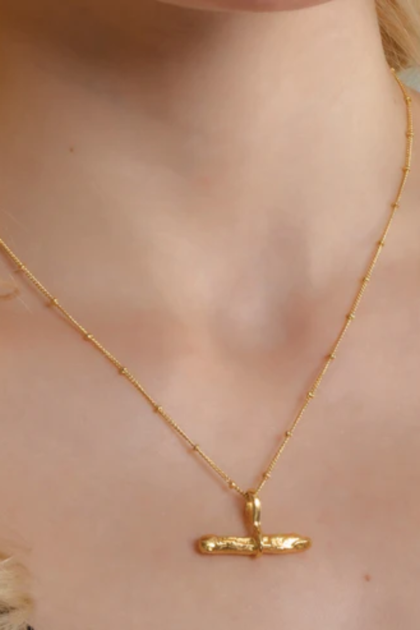 Elevate your neckline with our Cylindrical Bar Necklace, meticulously crafted and adorned with premium gold plating for a touch of timeless sophistication.