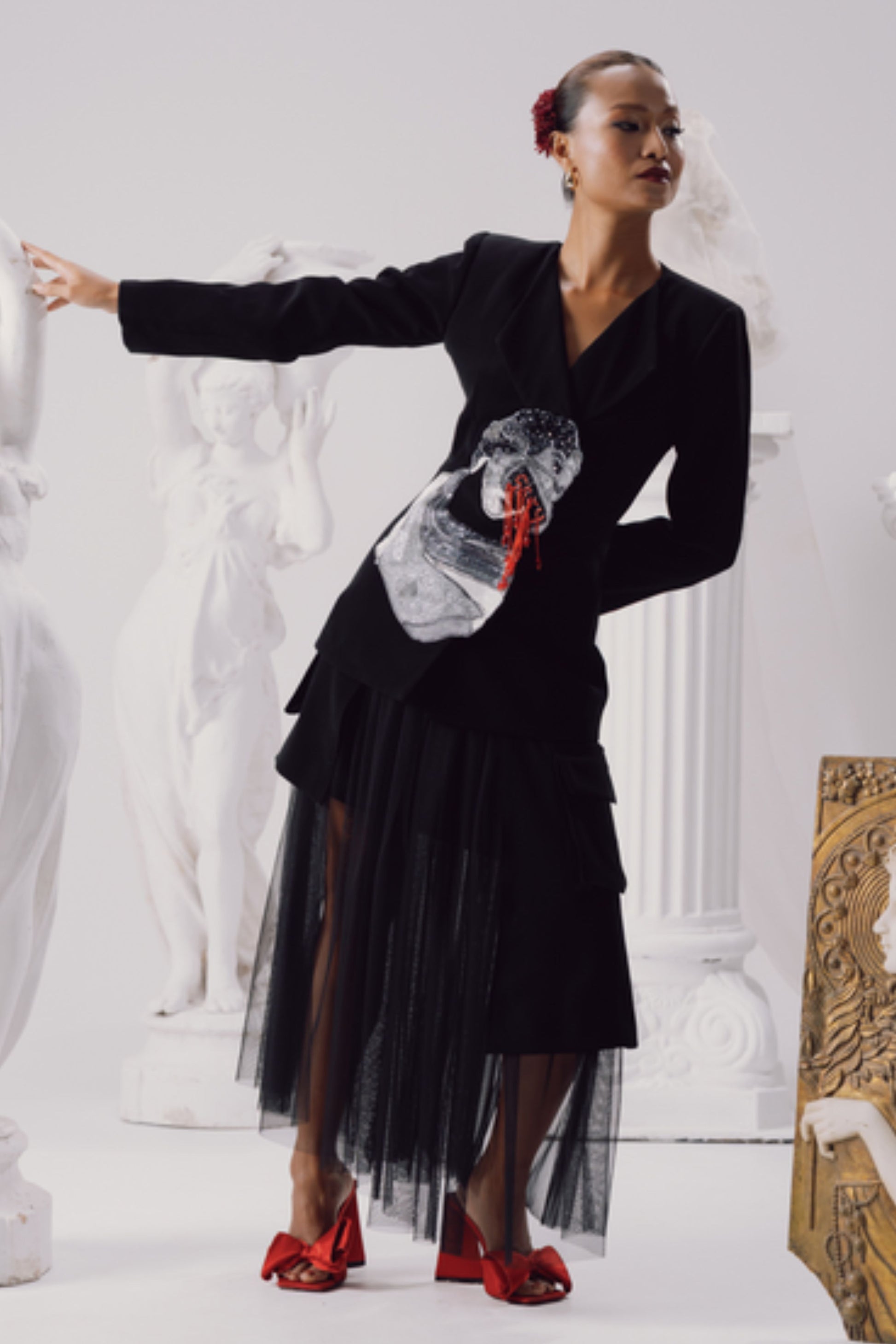 With a play on texture and volume, this A-line skirt blends timeless elegance with a youthful edge. Part of the Genesis Pre-Fall 2025–26 collection, the silhouette features a flouncy tulle/non stretchy mesh overlay softened by a breathable cotton lining. A non-stretch waistband and concealed side zip ensure a structured yet feminine fit. Designed to be styled solo or paired with a shirt from the collection, this piece transitions seamlessly from daywear to evening styling.