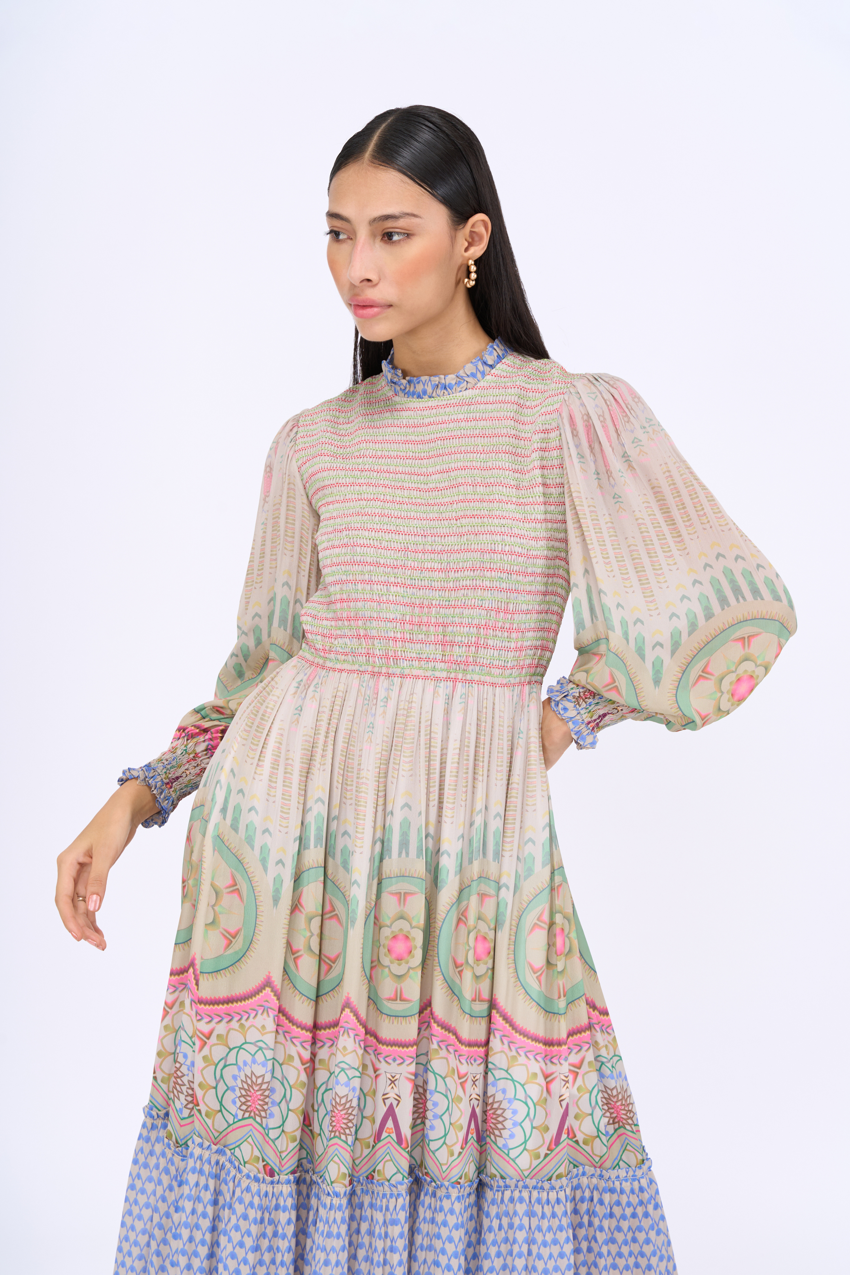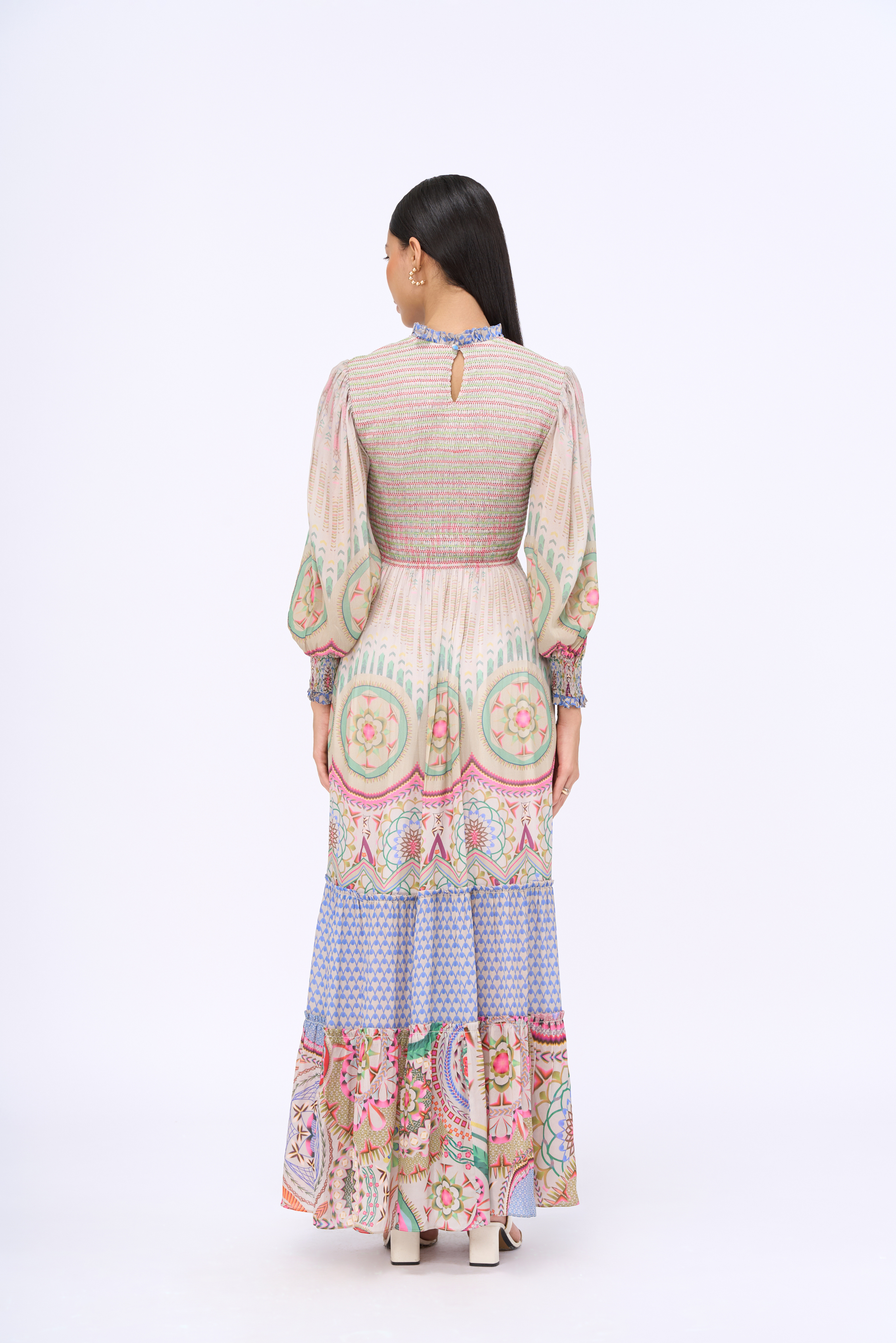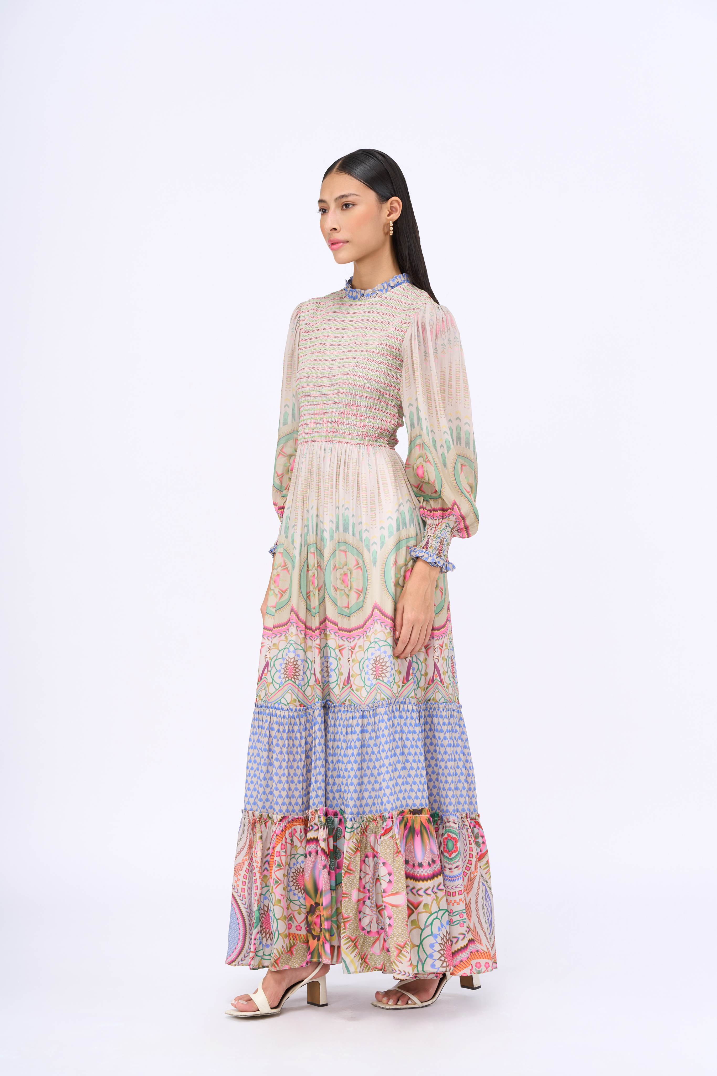 Discover the art of multicolor smocking tier dress in samsara-engineered print.