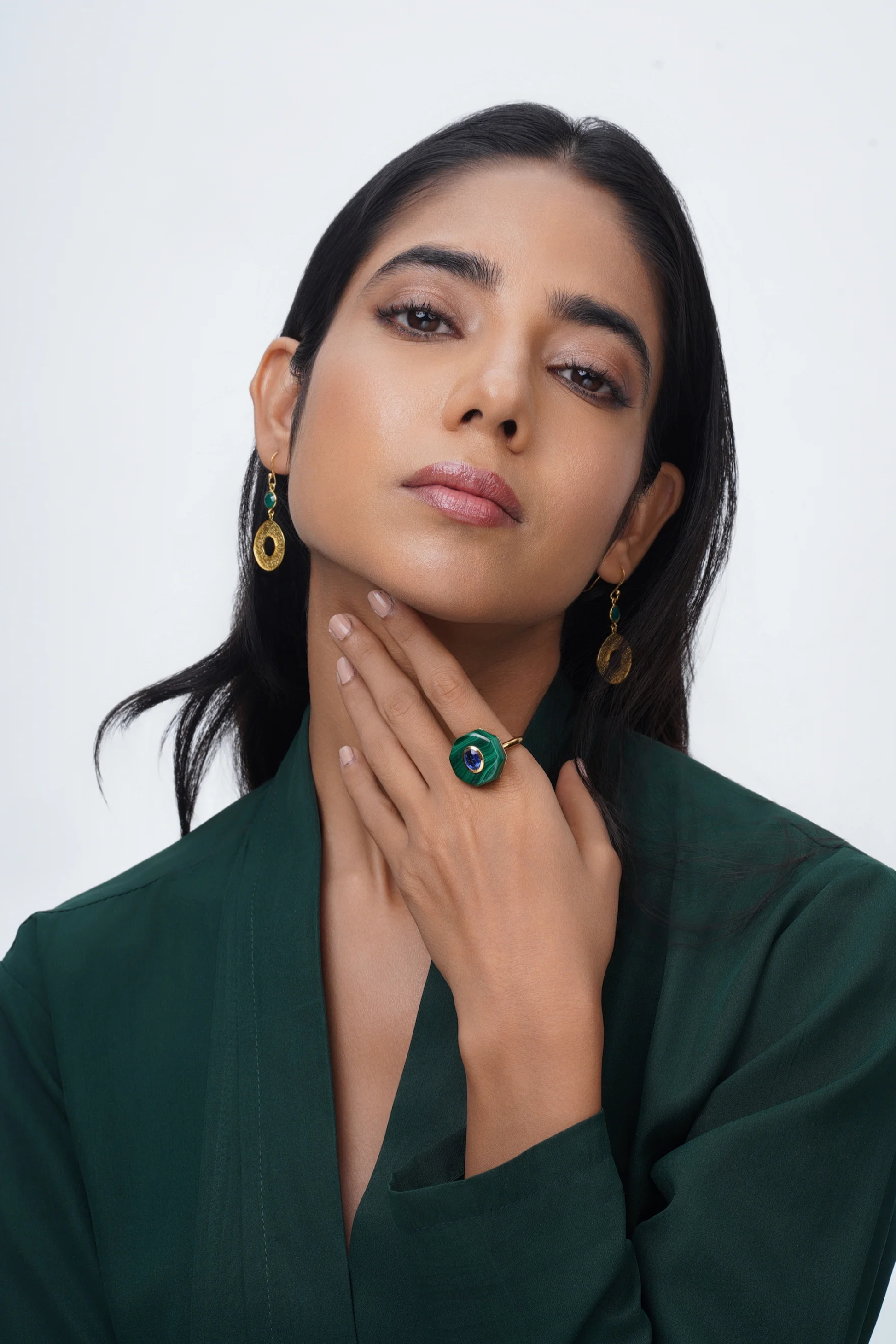 The Genesis Ring is a bold statement piece and object of art. Inspired by historic royal jewels the contrasting colors and geometric shapes will mesmerize the crowd.