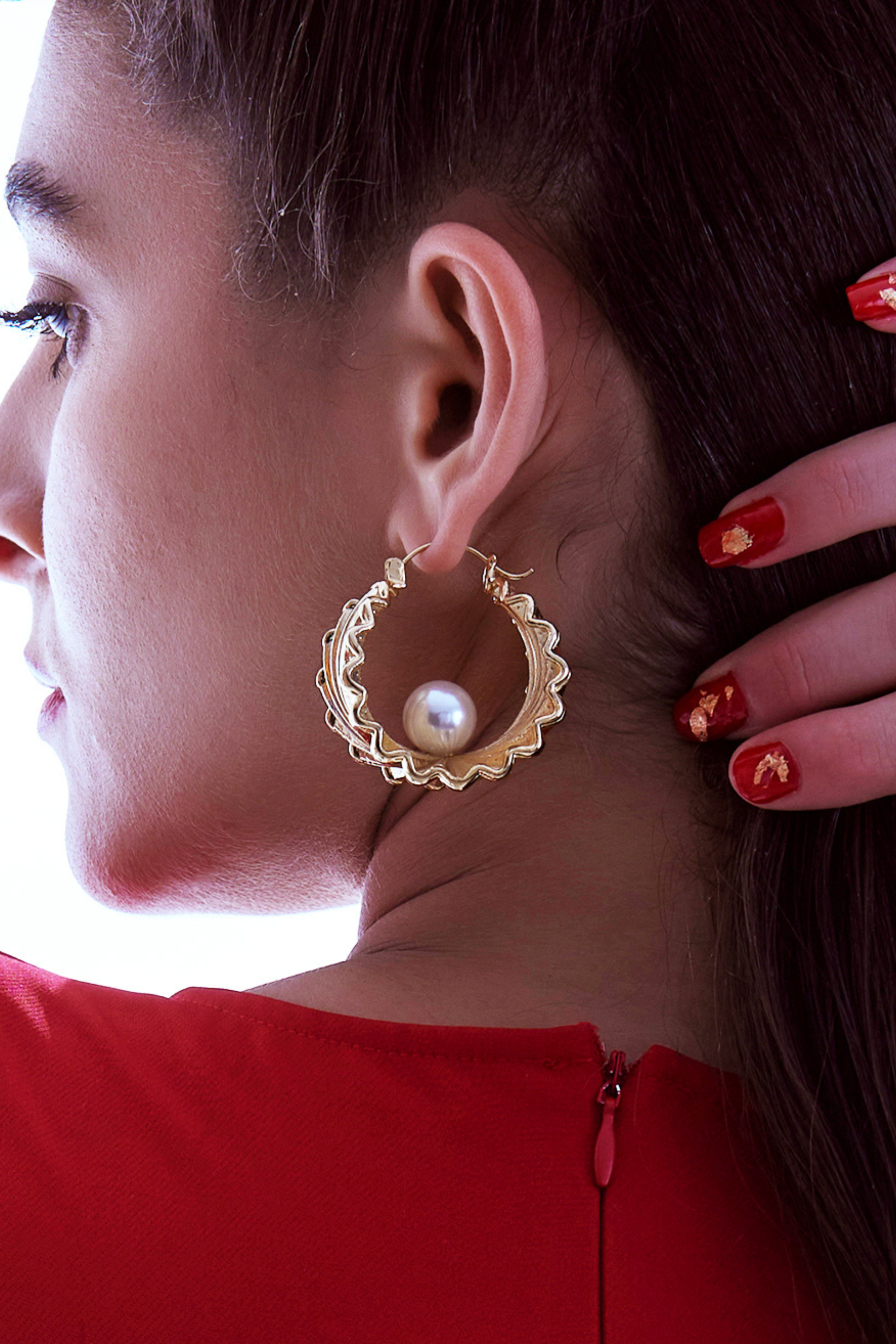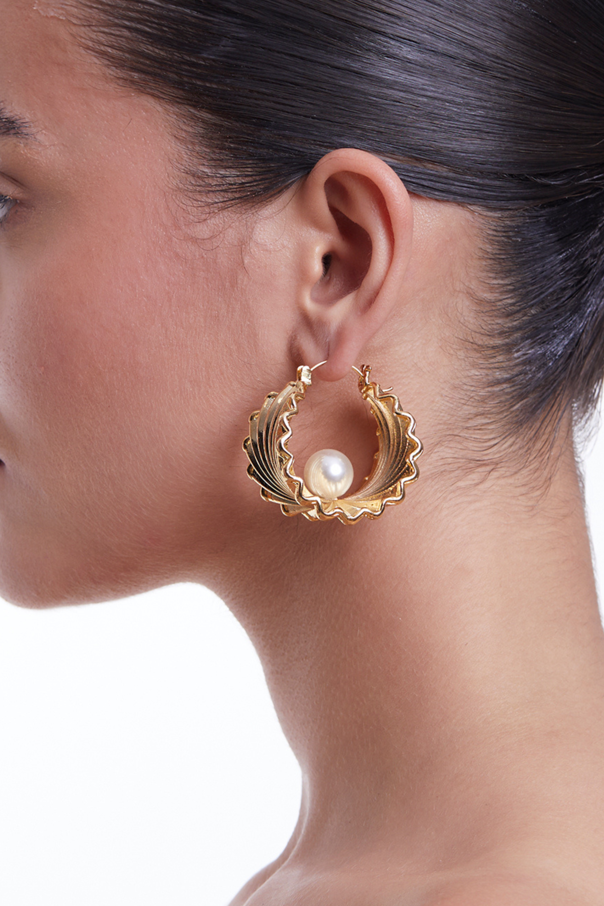 Channel the tranquil allure of the sea with this sophisticated pair of hoops from the Naaz collection. Whether it's a night out, or a casual day, these add an oceanic touch to your look. Crafted with precision, these hoops are slightly heavy, and will amp up your look in no time!