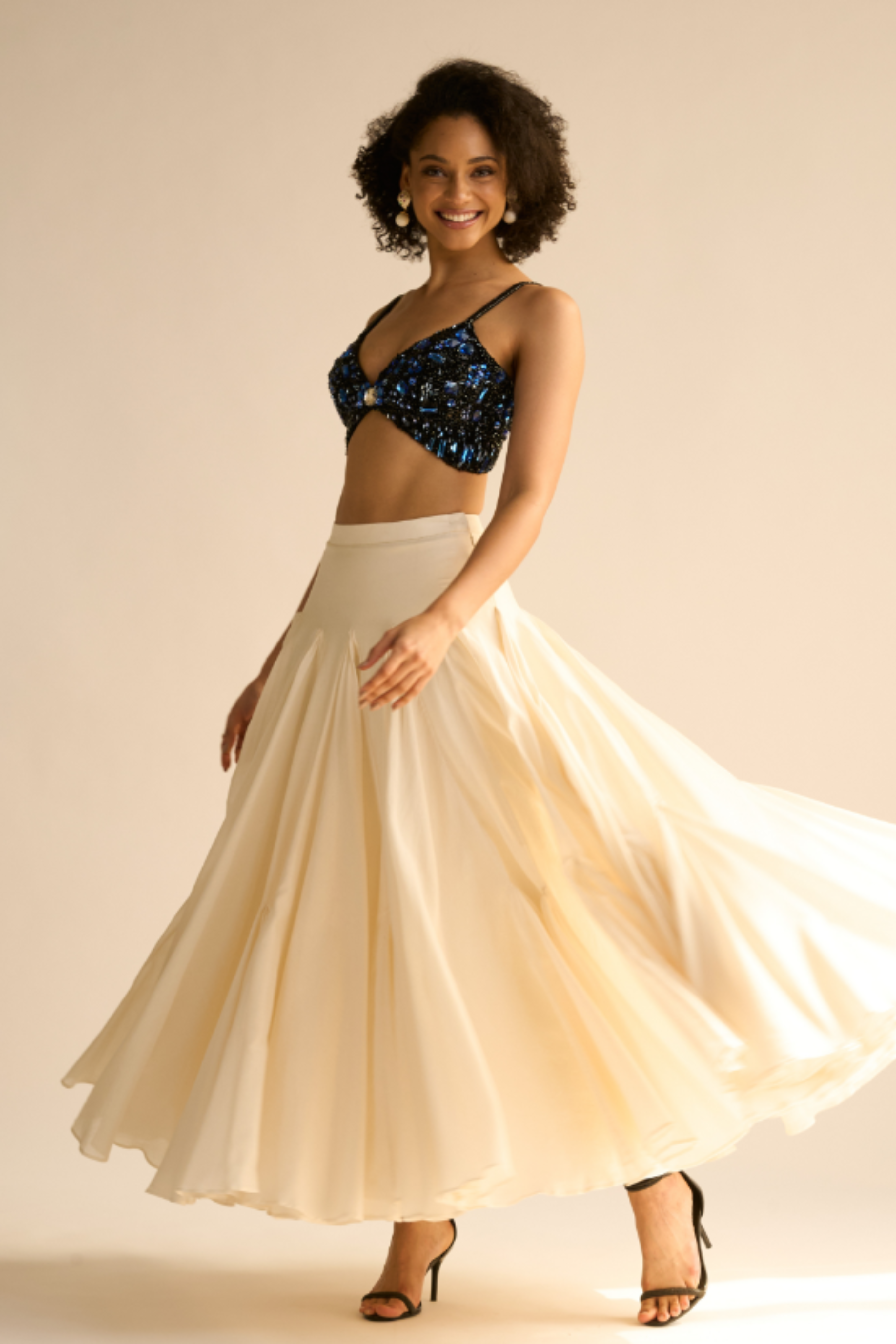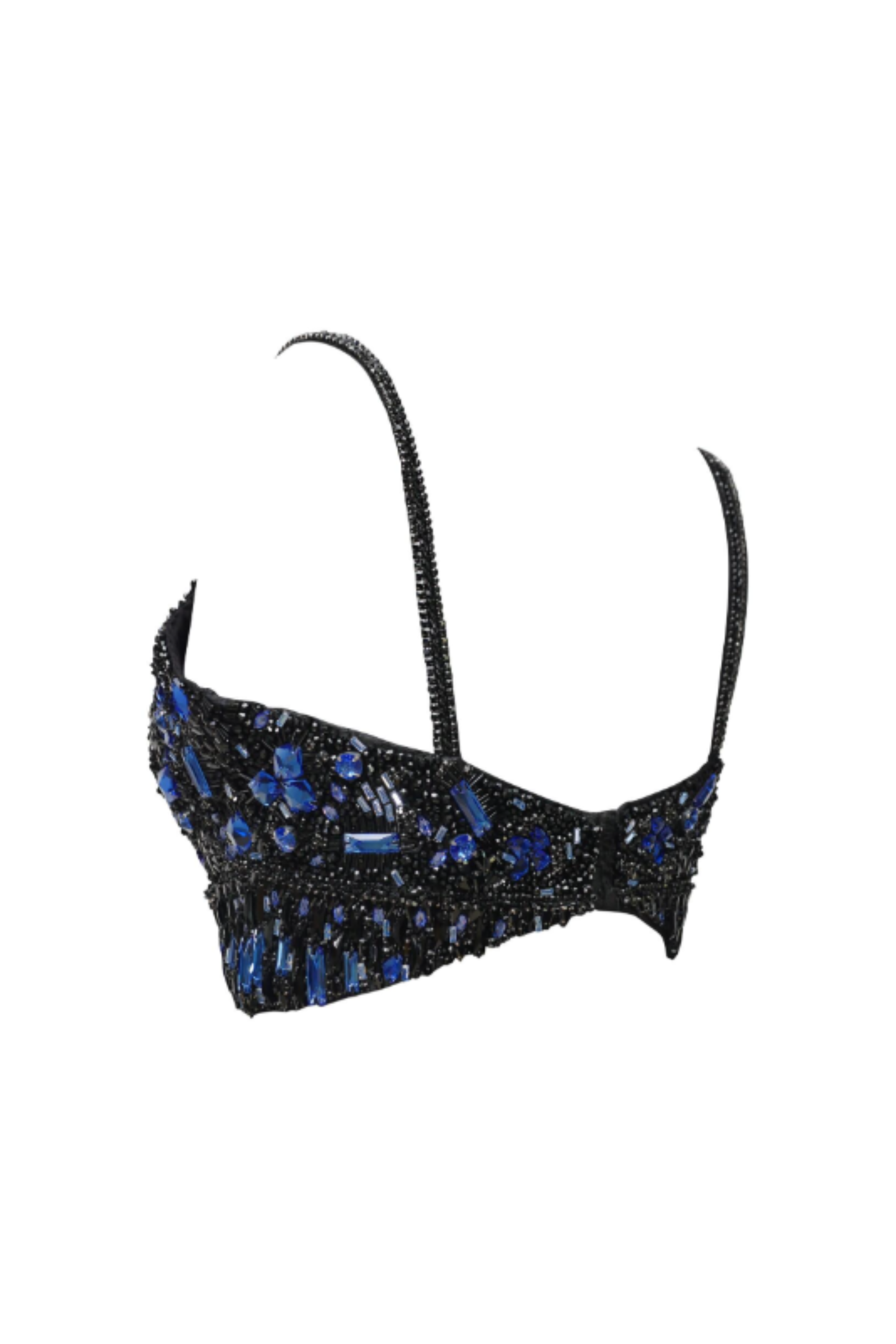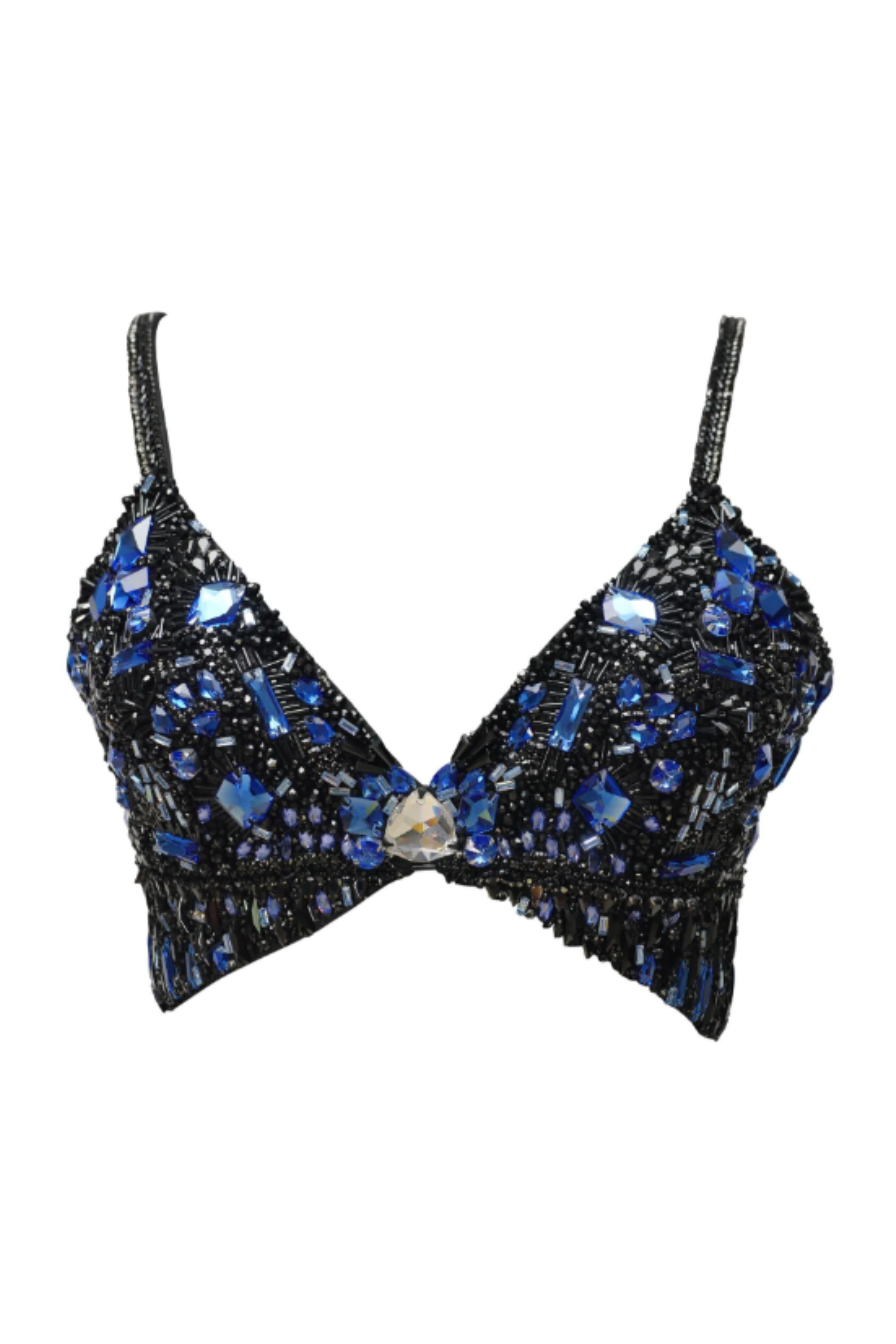EMBROIDERY: Blue white and black crystal & stone work