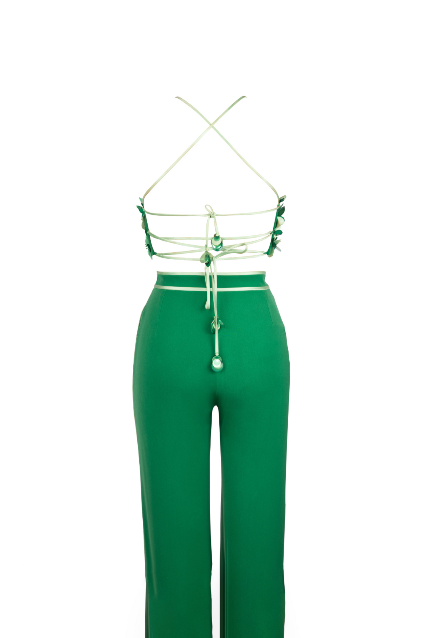 3D handcrafted elements in nuances of green come together to make this statement top.