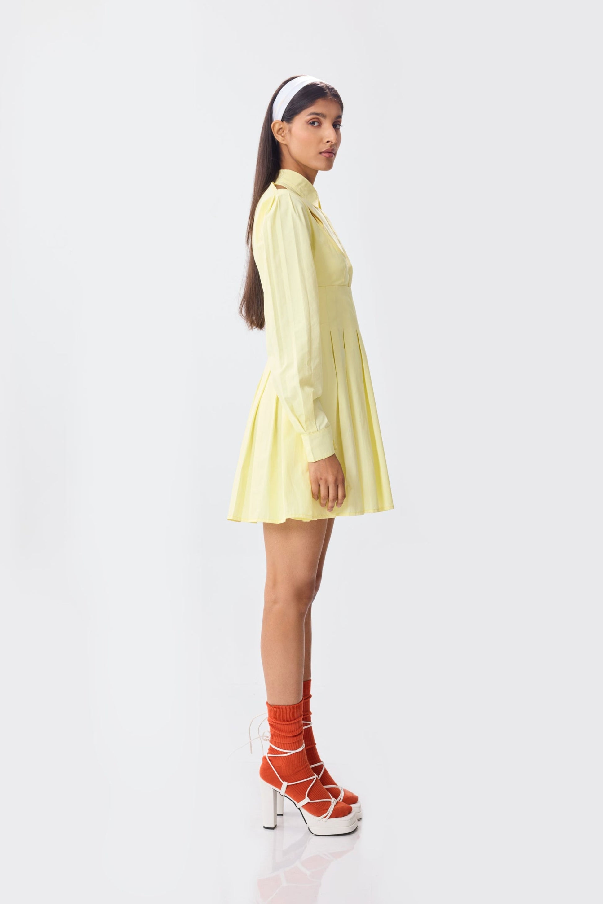 Meticulously crafted with attention to detail, our limon pleated dress is the perfect summer dress with a street edge. The shirt collar and placket give it a classic look, while the shoulder cutouts and overlapping bralette, make it contemporary. Pleats on body and sides elevate the whole look. Side zip for easy access.