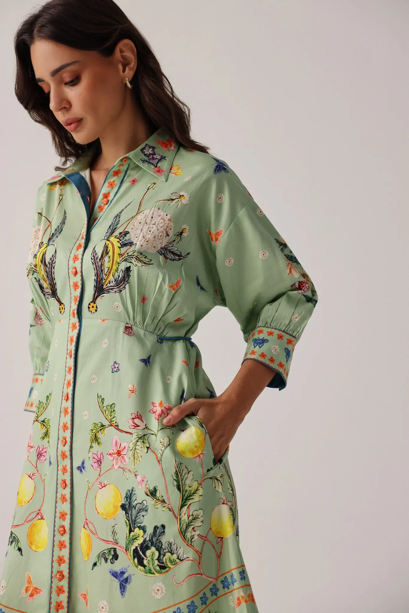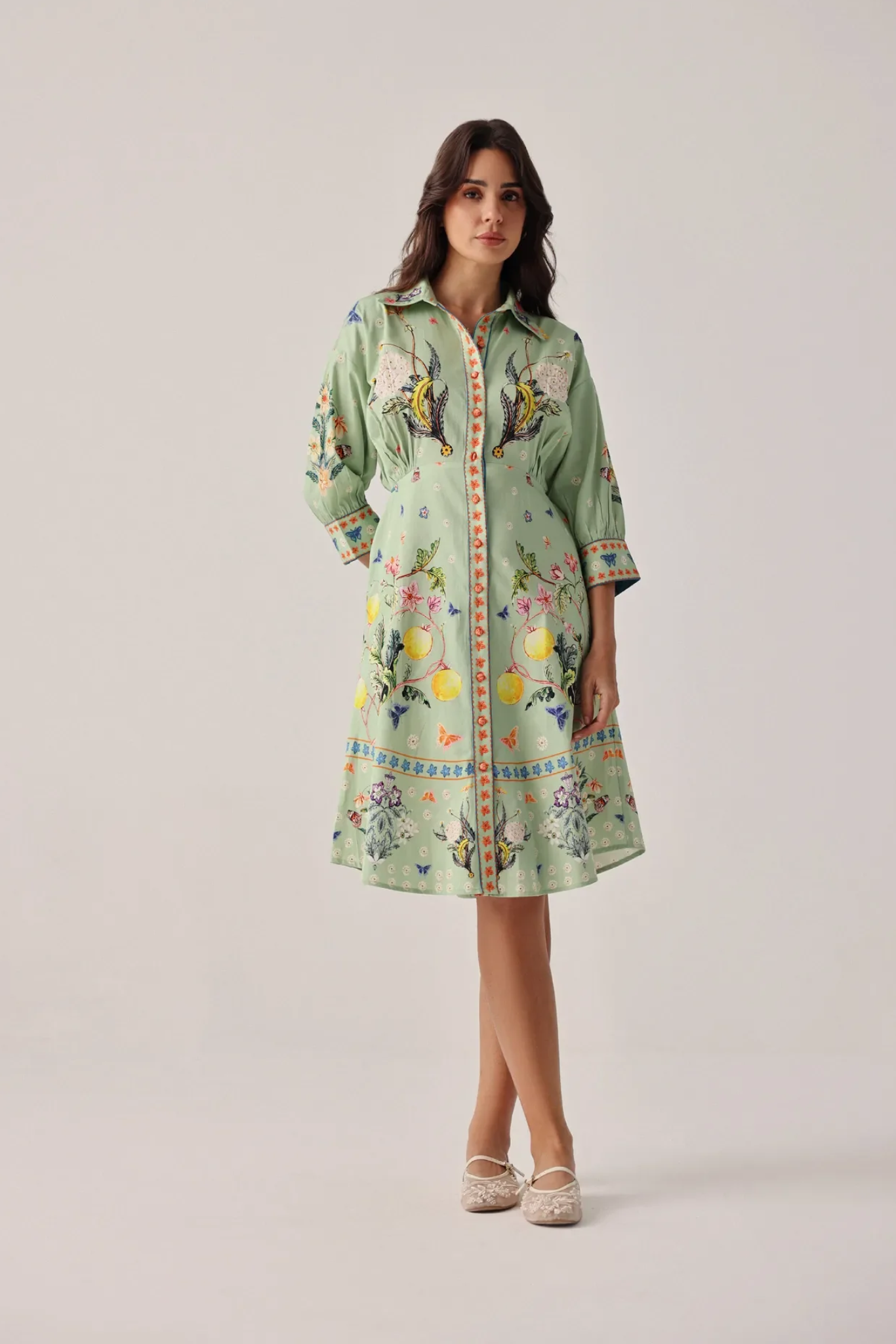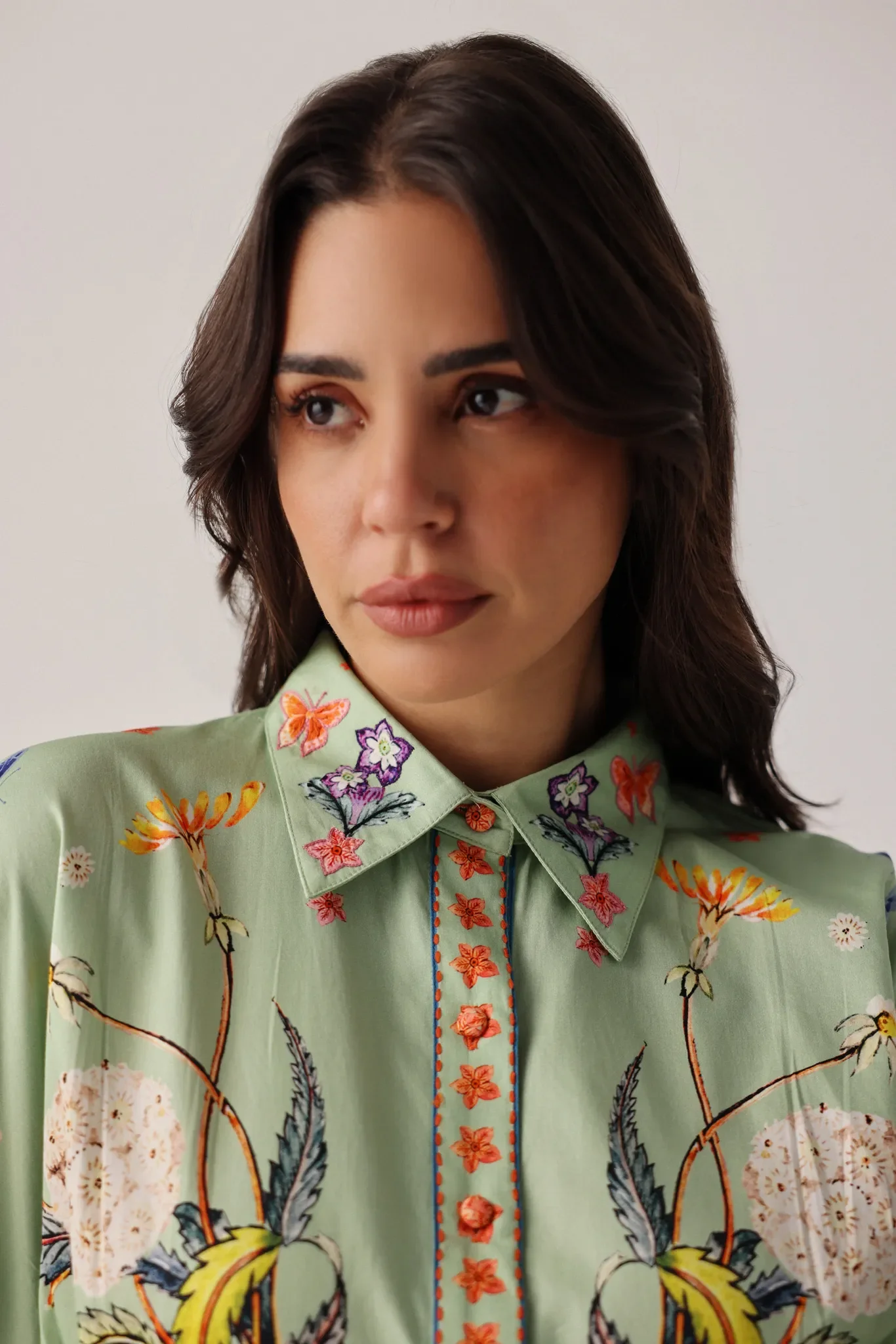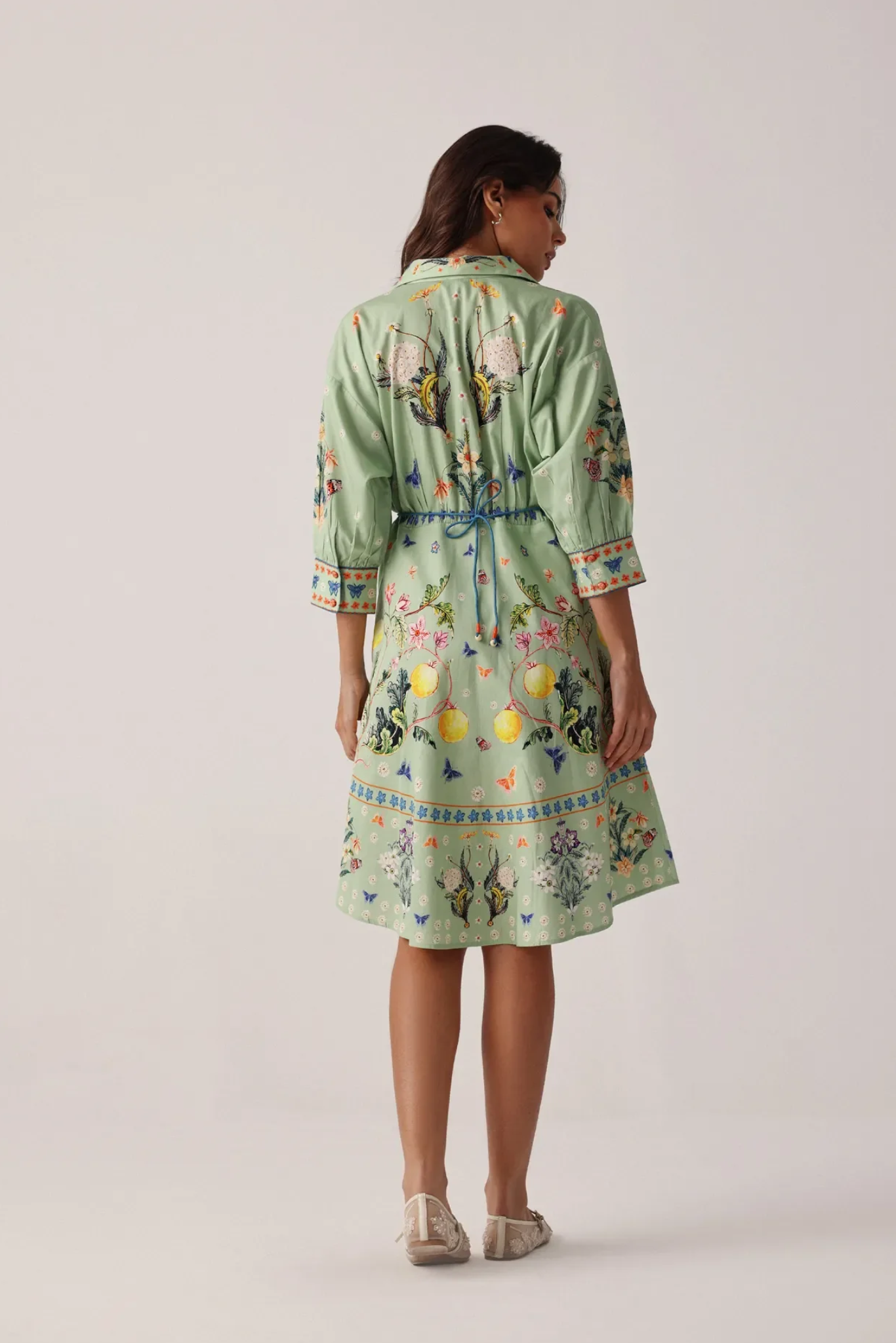 Three-quarter length sleeves with delicate embroidered detailing at the cuffs