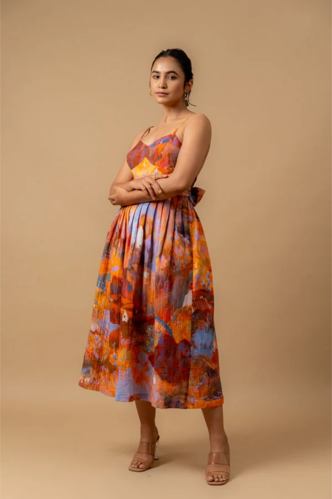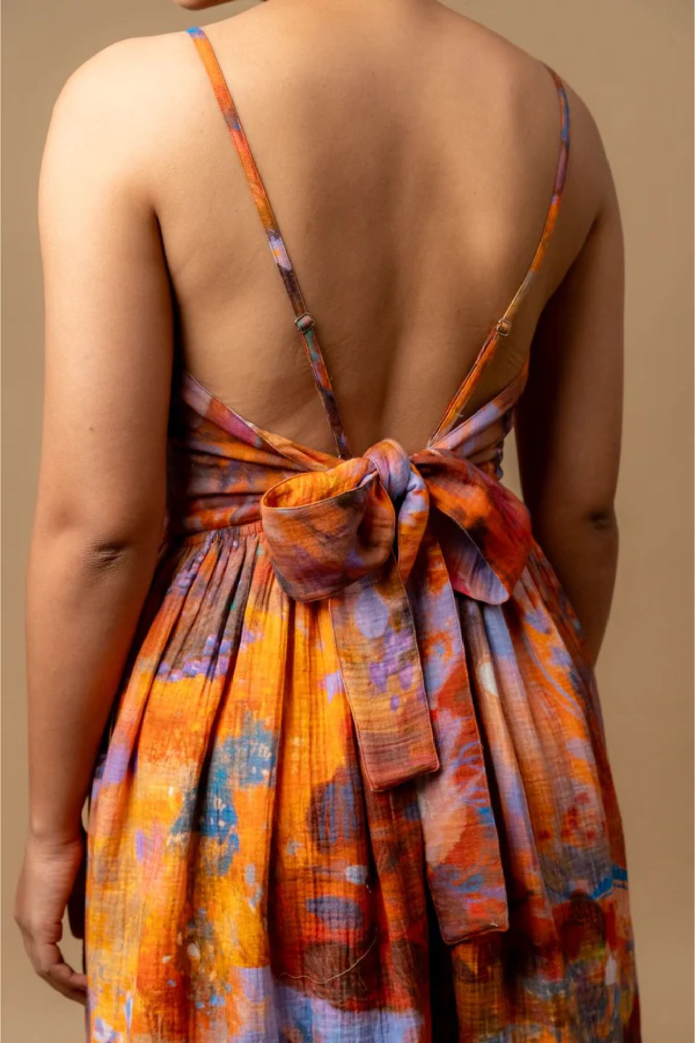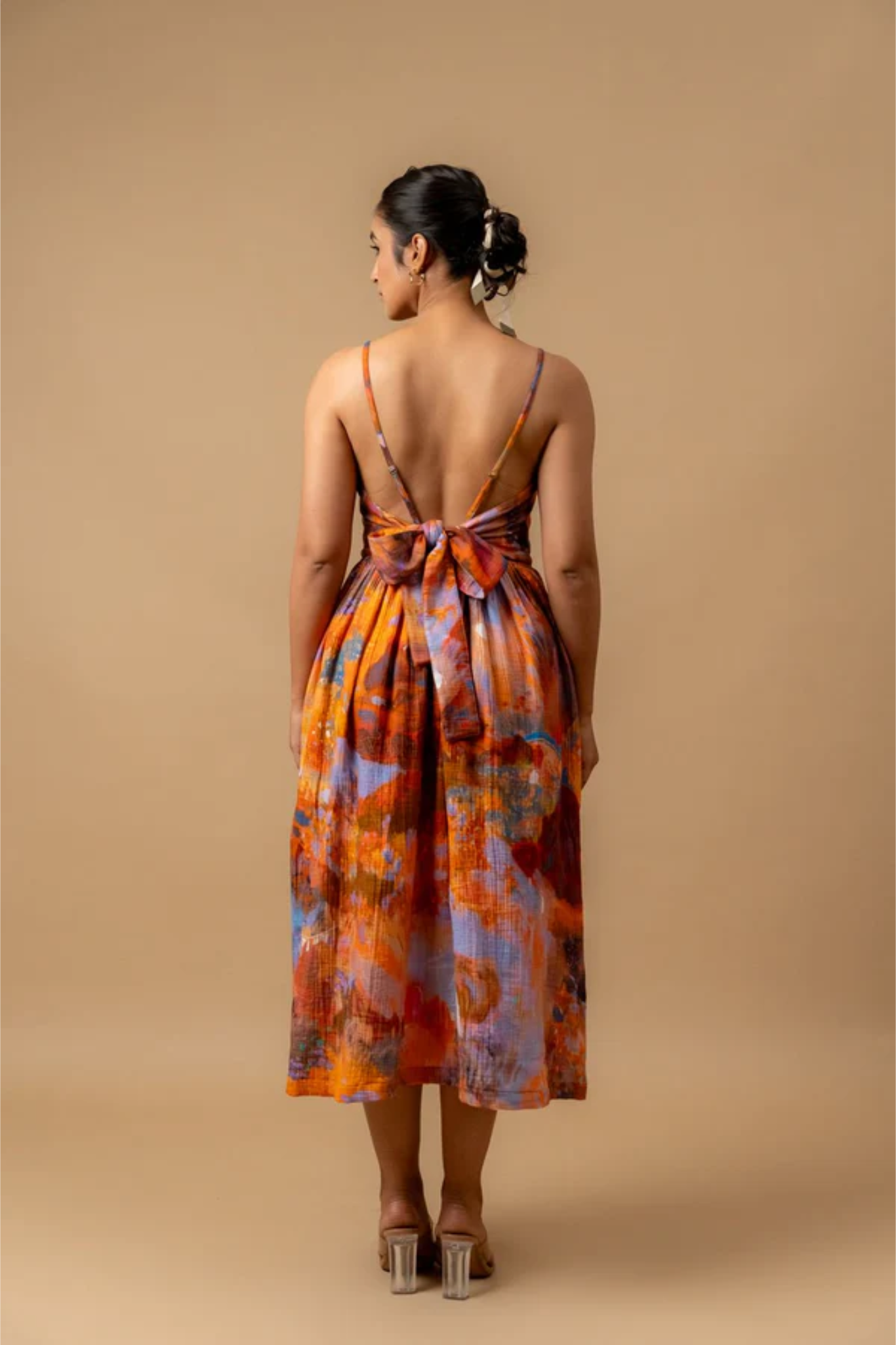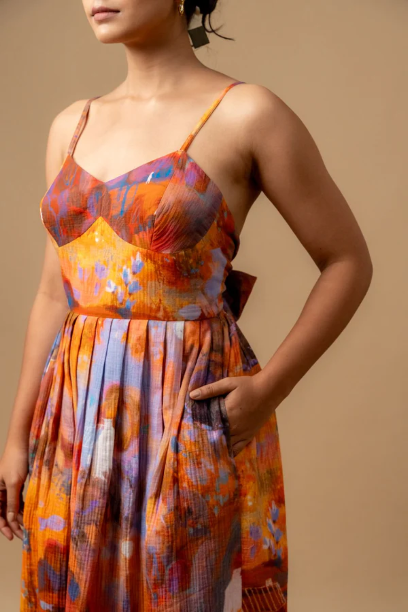 A playful sundress with pleated waist, a charming back bow, and inseam pockets. Perfect for sunny days, wear it solo or layer under a denim jacket for a casual look.