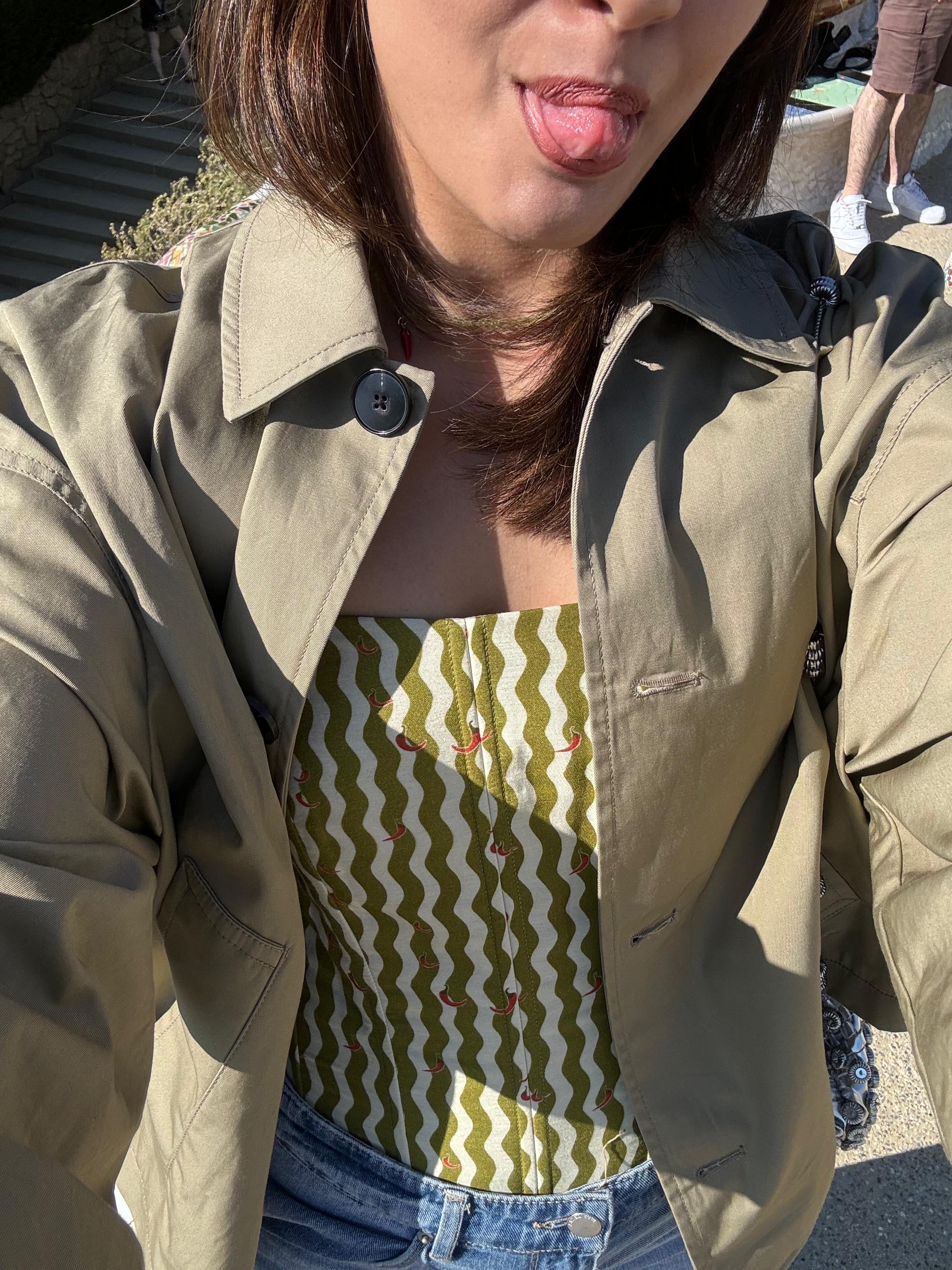 This tie-back corset spices things up with our signature Mirchi print in a fresh, earthy palette. Designed for sunshine days and slow strolls, it features a flattering sculpted front and an adjustable back for the perfect fit. Easygoing, bold, and ready to wander.