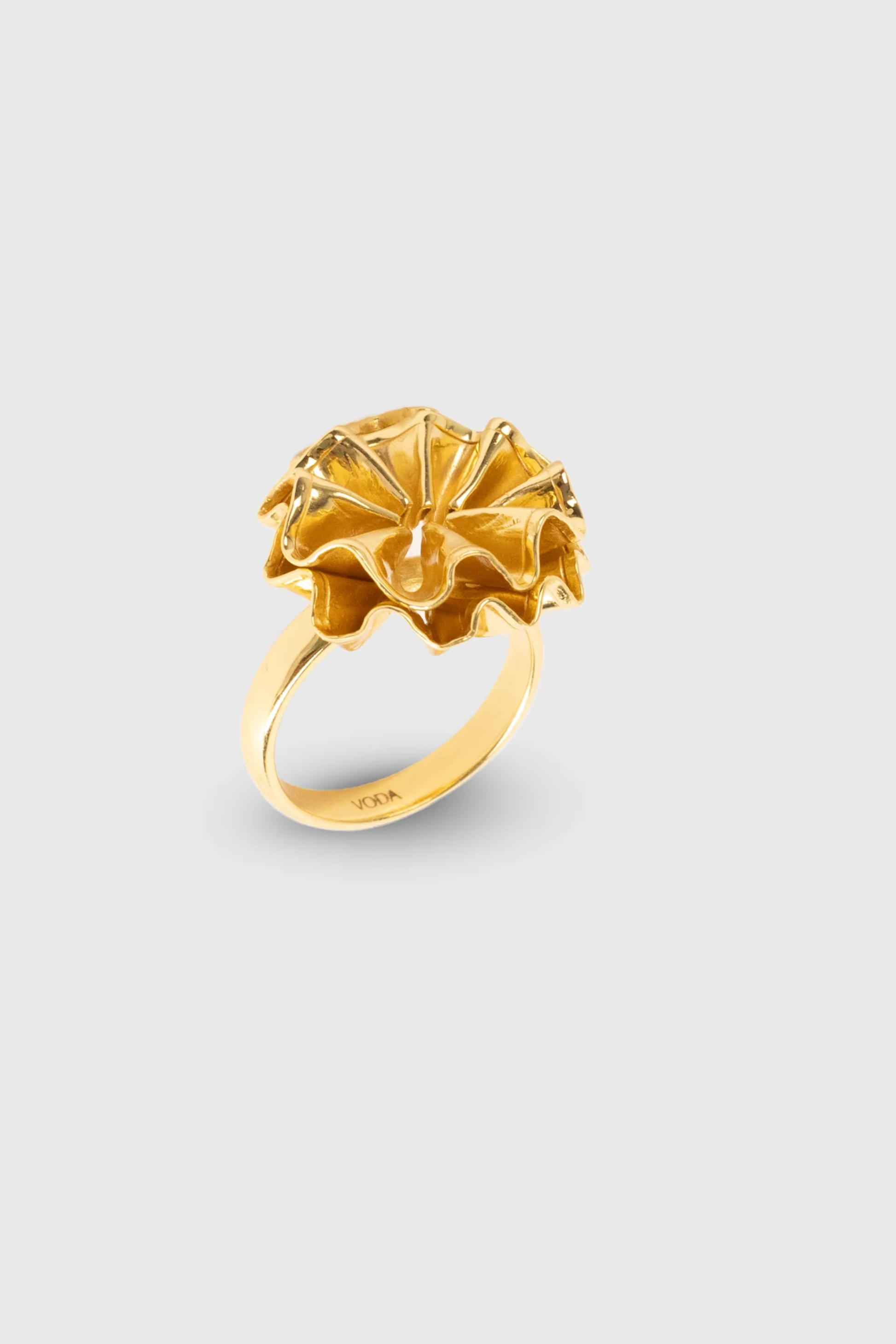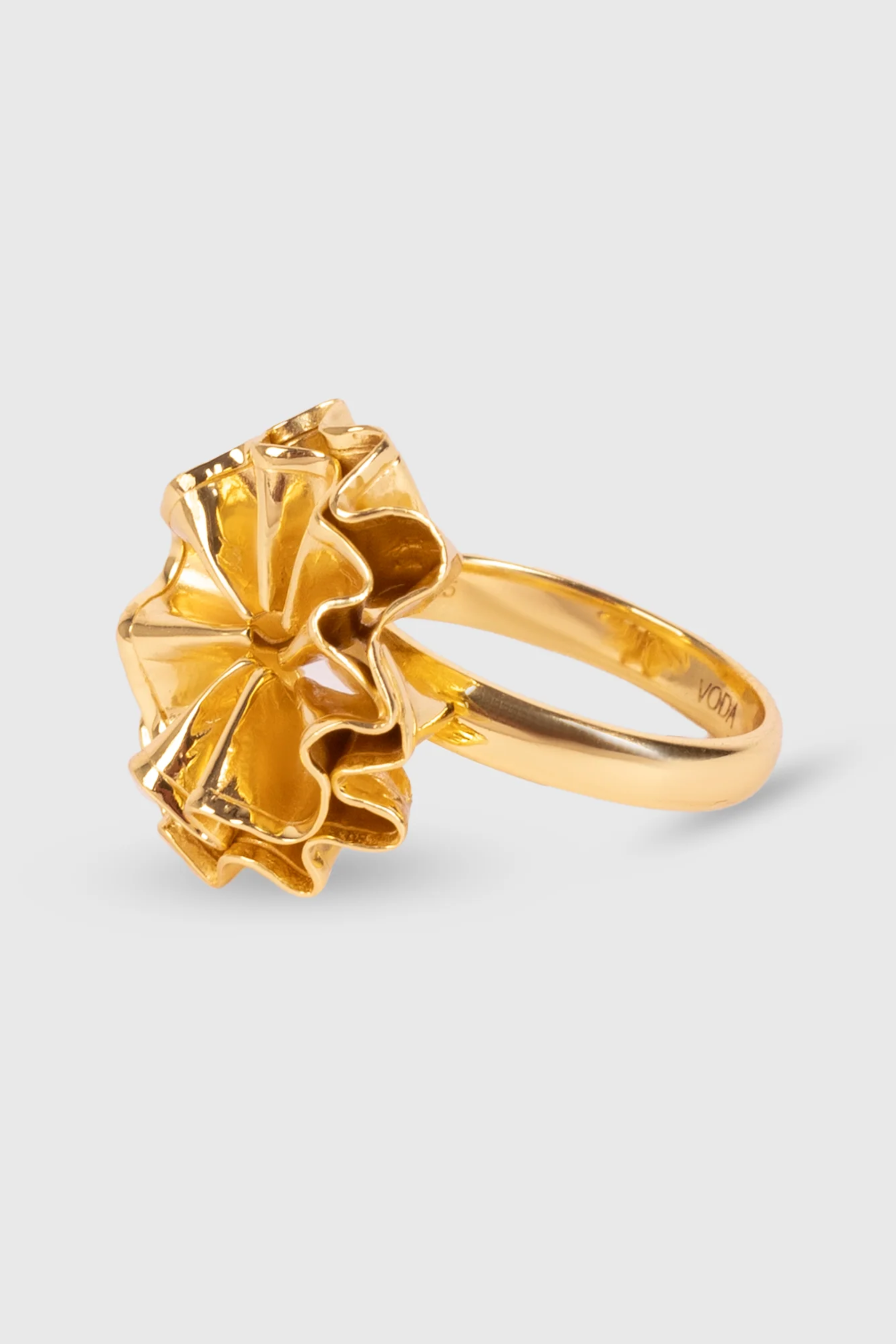 Product Description The Molten Flower Ring is a contemporary design with complex folding layers, envision a flower being forged in lava. Product Code