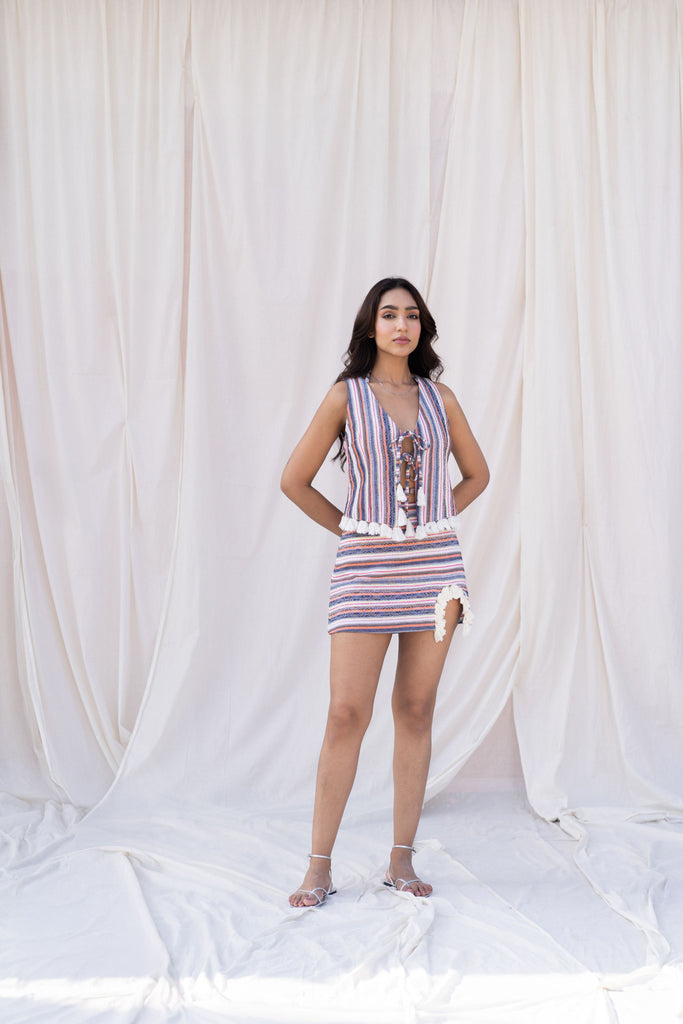 Top: Woven Cotton Jacquard Skort: Woven Cotton Jacquard