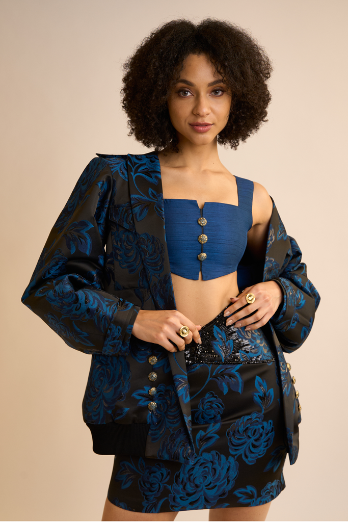 A combination of sporty and classic Bomber Jacket embedded in rich ornate detailing of the brocade fabric. Edginess and Elegance at its best to make you stand out at any of your high end events.