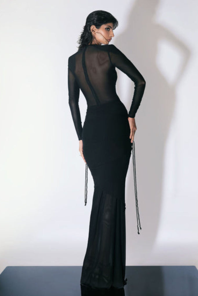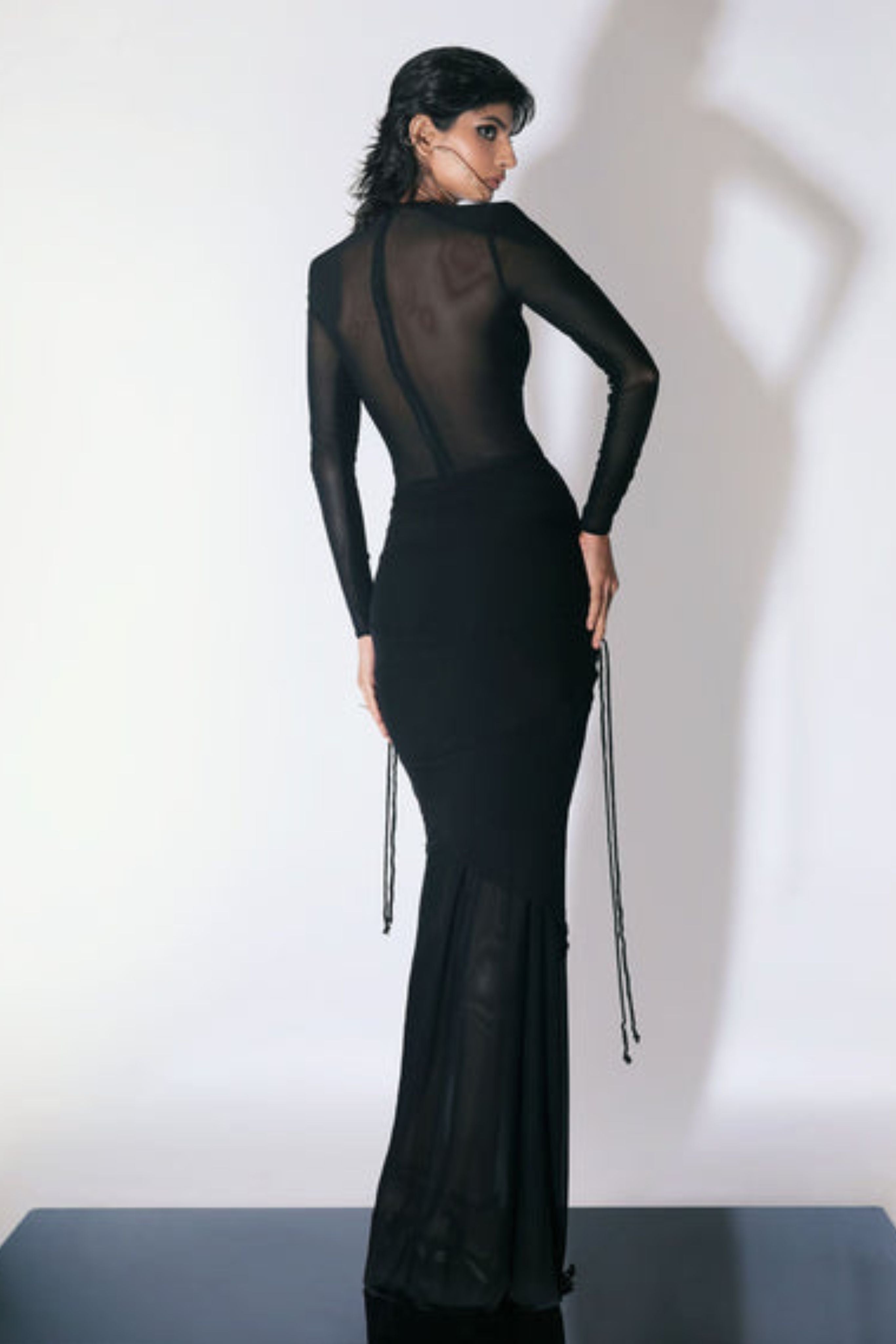 A miltilayerd dreaped skirt in stretchable mesh with lining