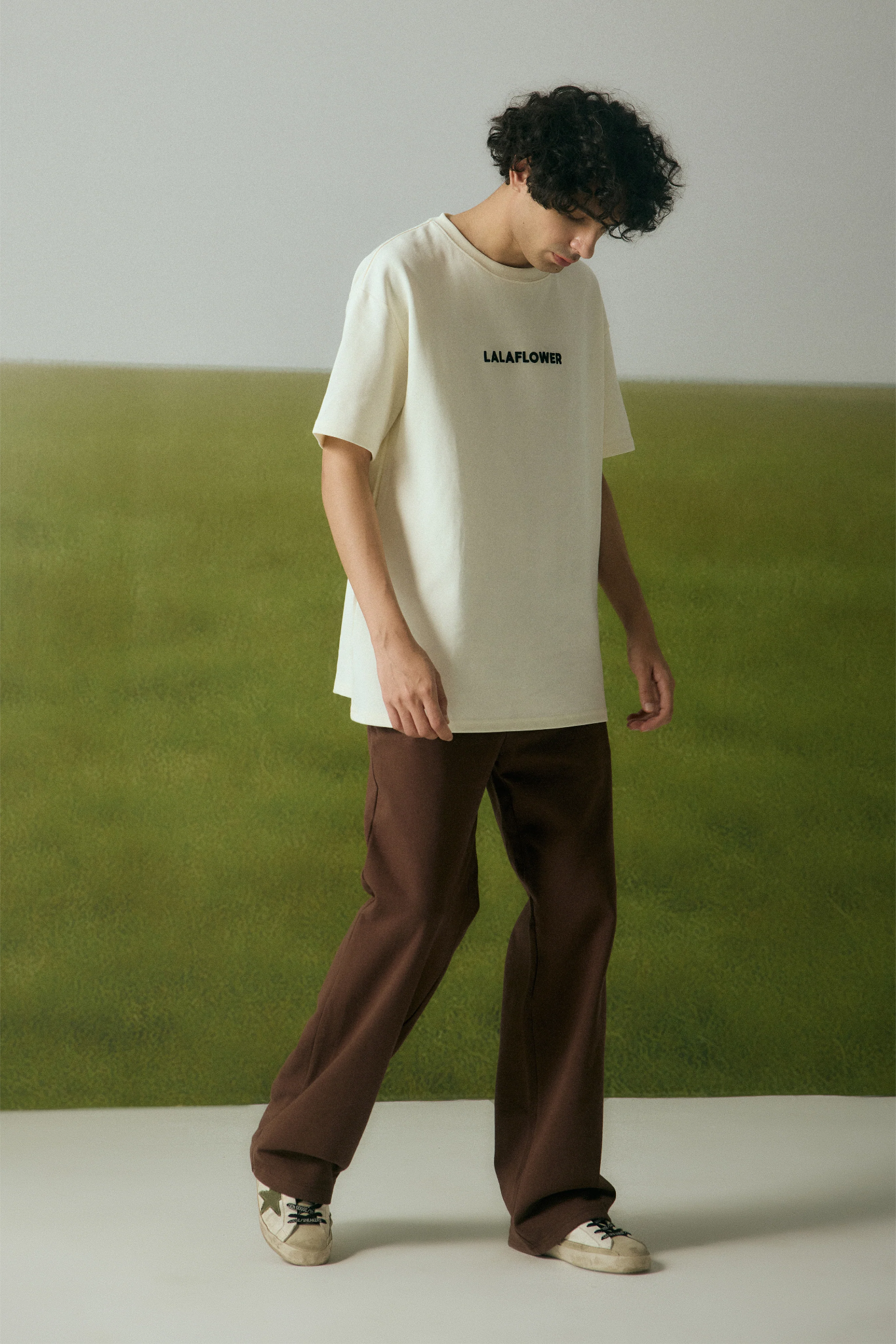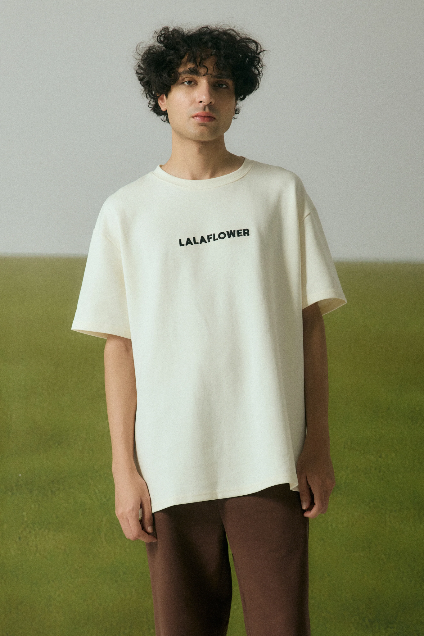 OUR OVERSIZED TSHIRT COMES WITH AN EMBROIDERED LALAFLOWER LOGO ON THE CHEST WITH OUR UNIQUE GARDEN BOARD PRINT AT THE BACK.
