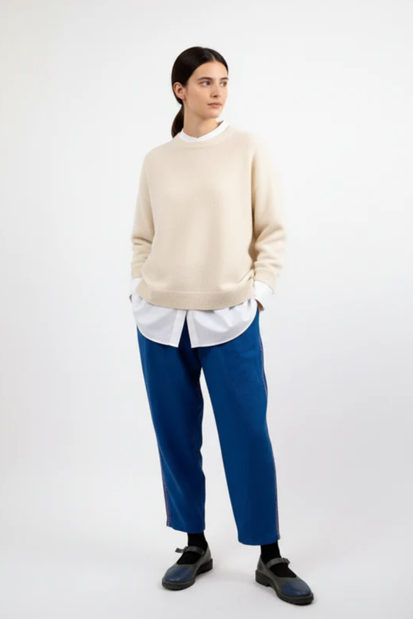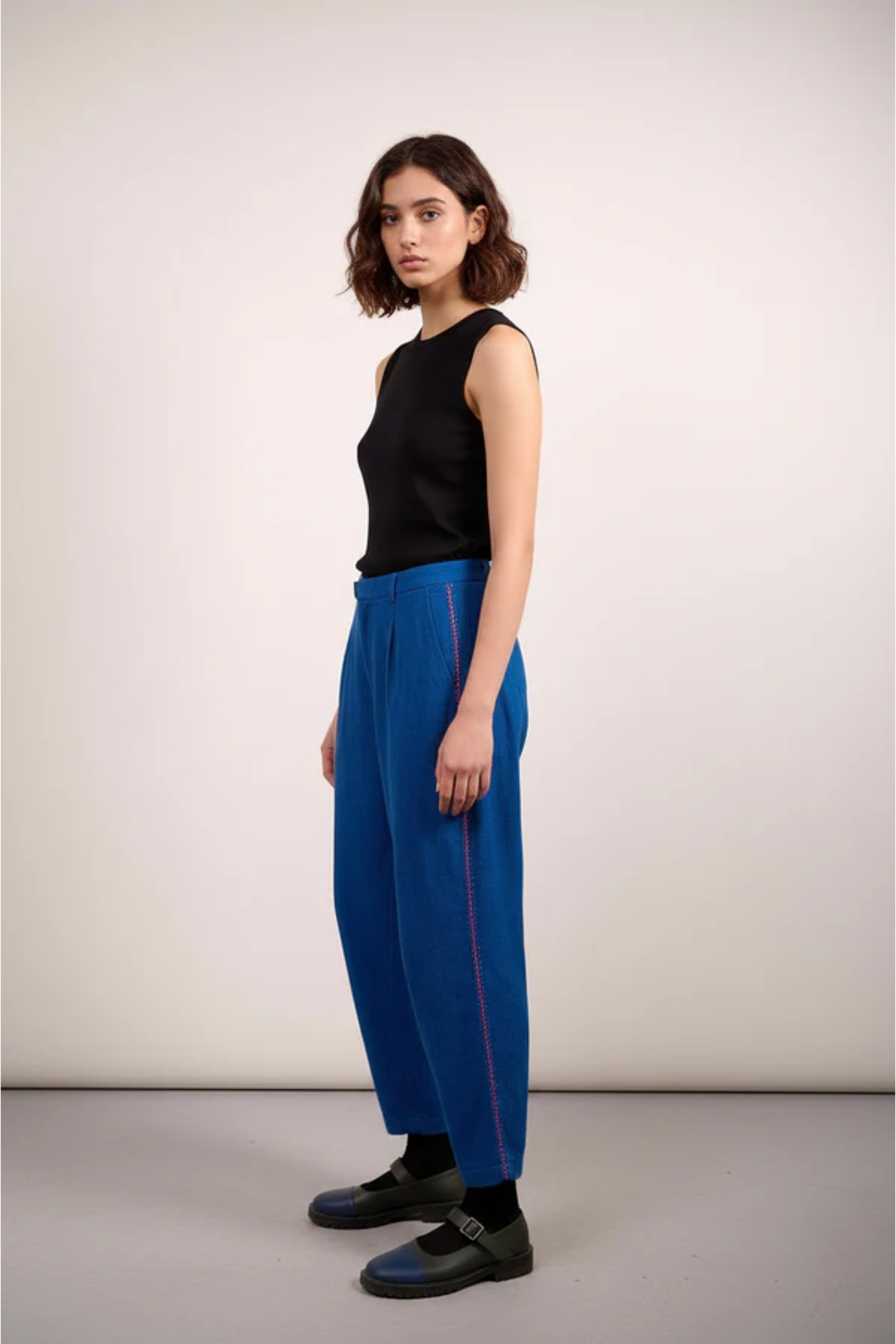 A versatile wardrobe essential, these regular-fit pants are crafted in Kala cotton naturally dyed in blue. Featuring delicate embroidery for subtle detailing. Lightweight and breathable, these pants are perfect for casual outings, relaxed office styling, or everyday wear.