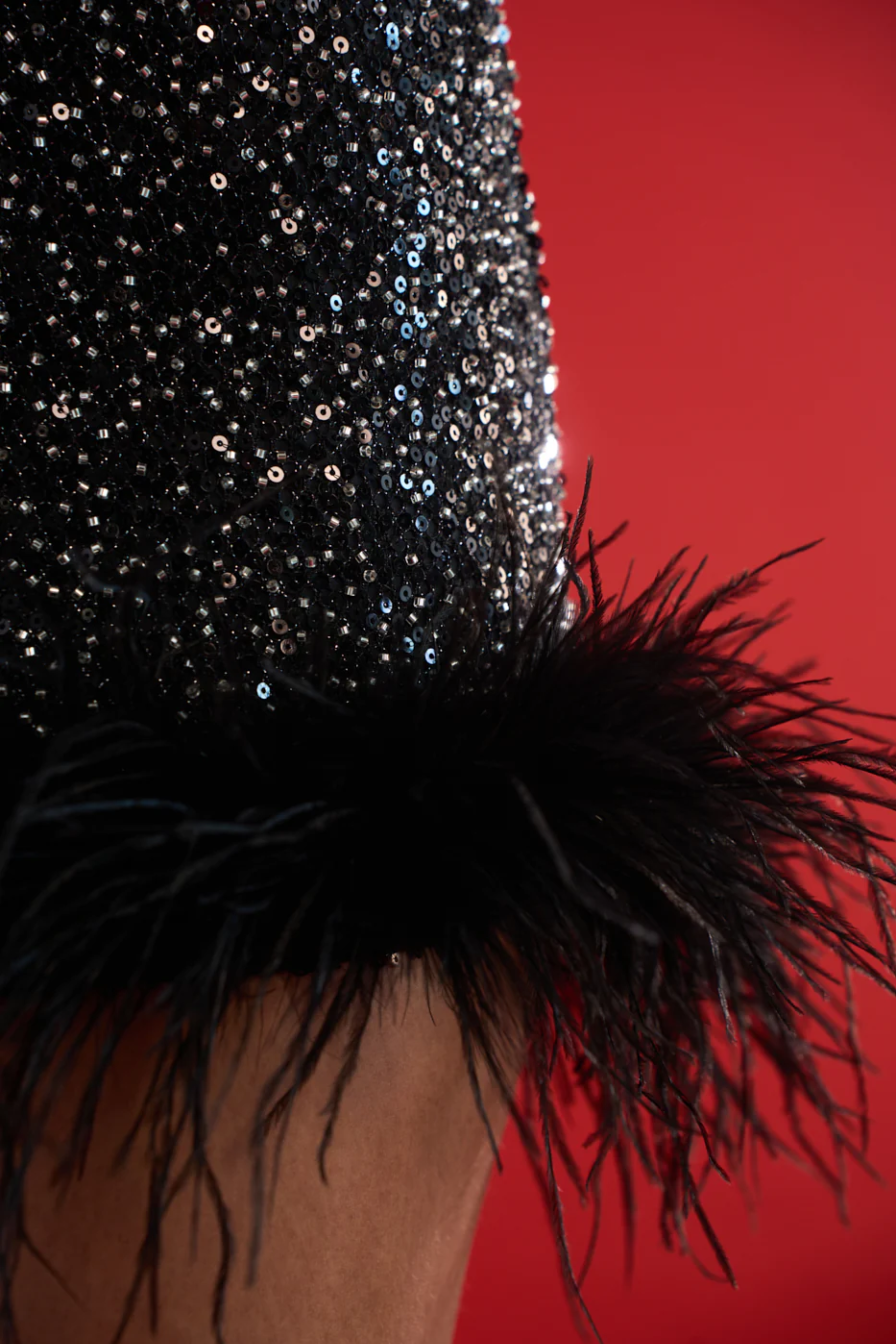 The hemline is adorned with luxurious feather trim, adding a playful yet glamorous touch. No of Components