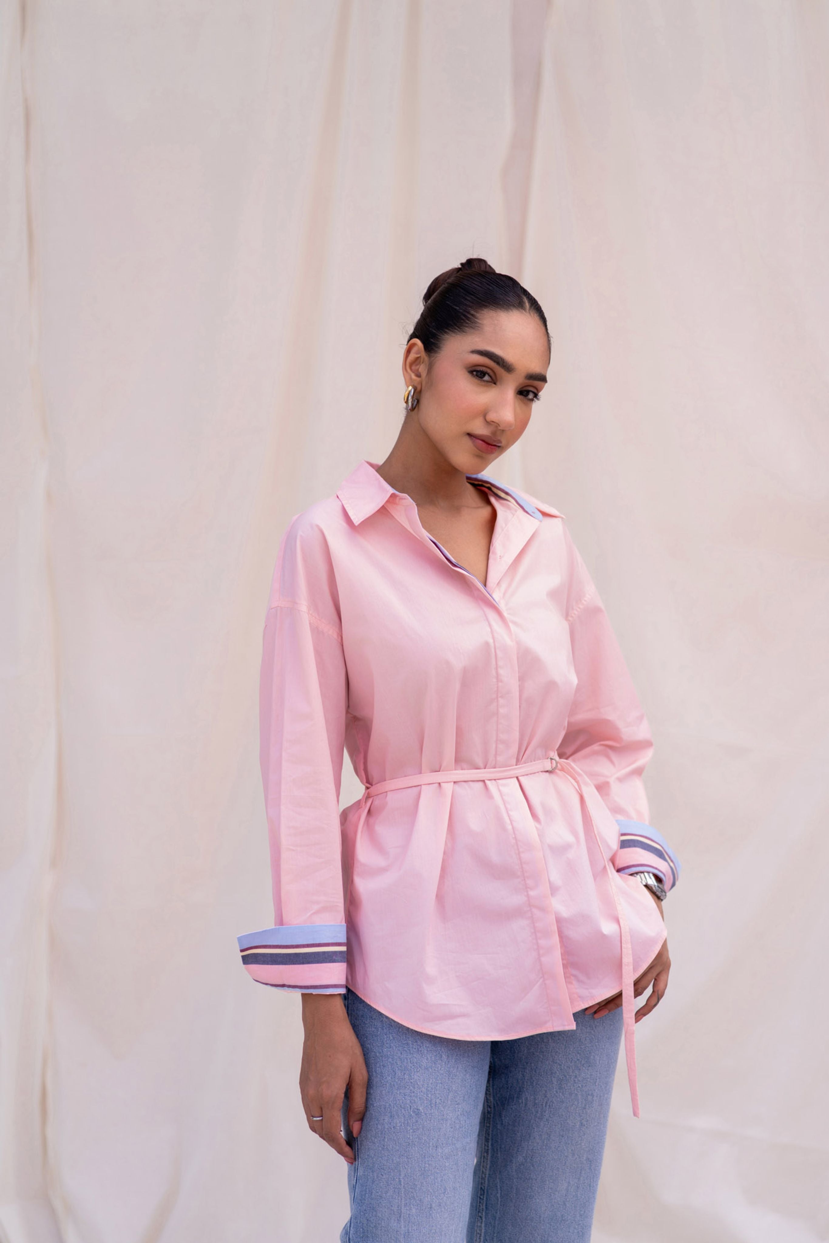 Add a touch of polish with this Pink Poplin Shirt featuring a waist-defining belt and contrast collar lining and cuffs. Perfect for work to weekend plans and chic day looks.