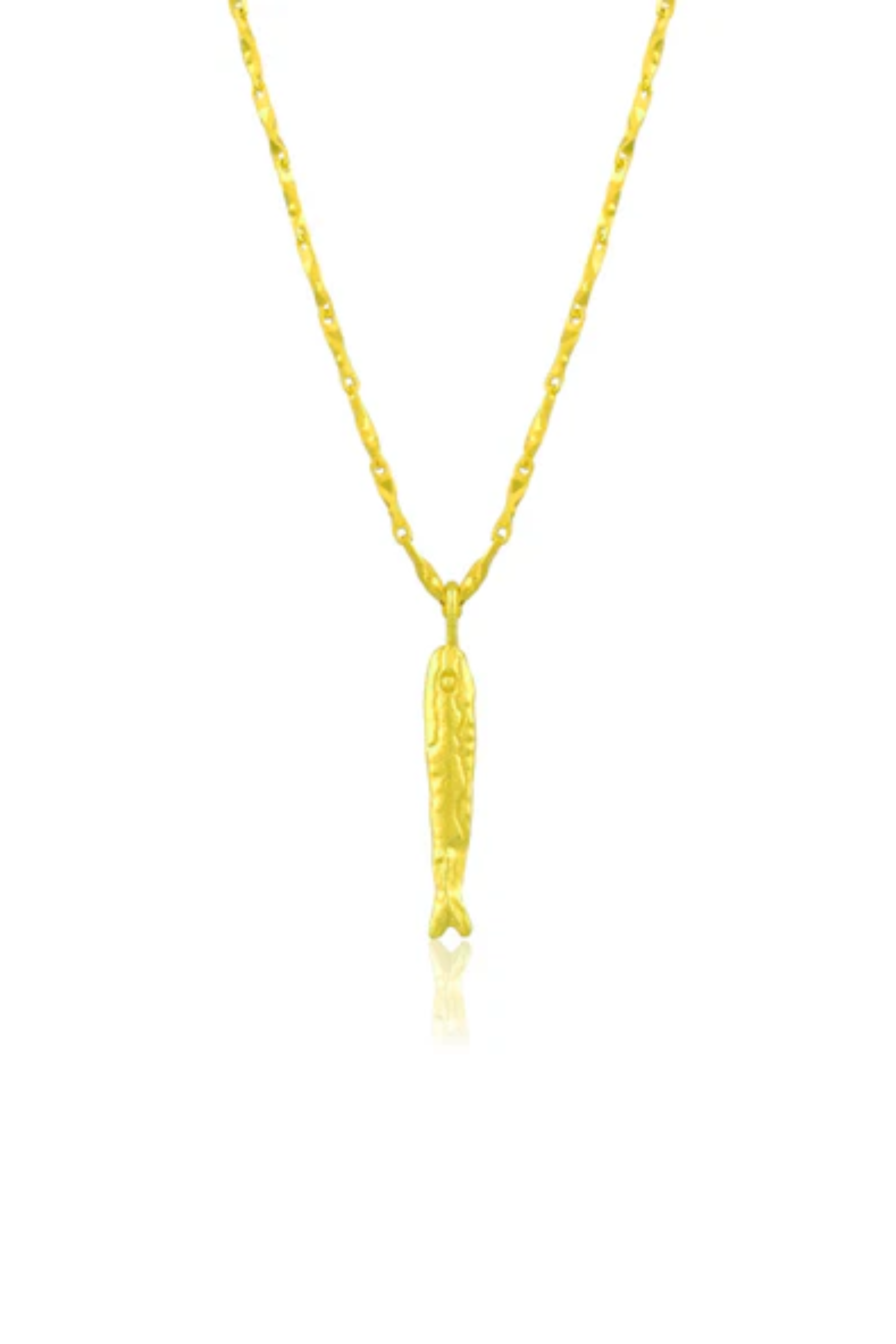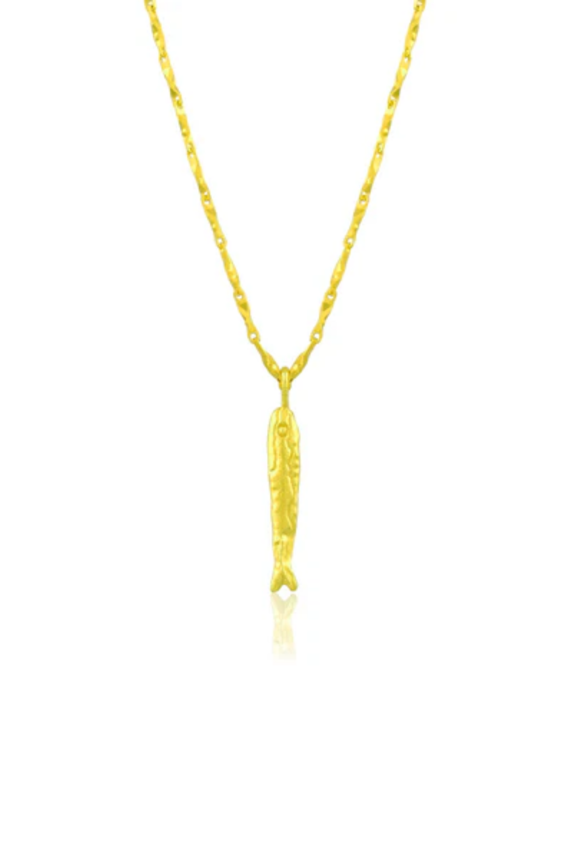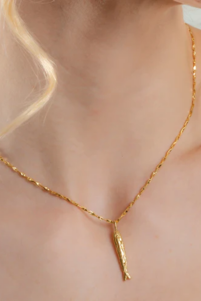 Dive into style with our Pratapgari Textured Fish Charm Necklace, shimmering with premium gold plating for a touch of aquatic allure.