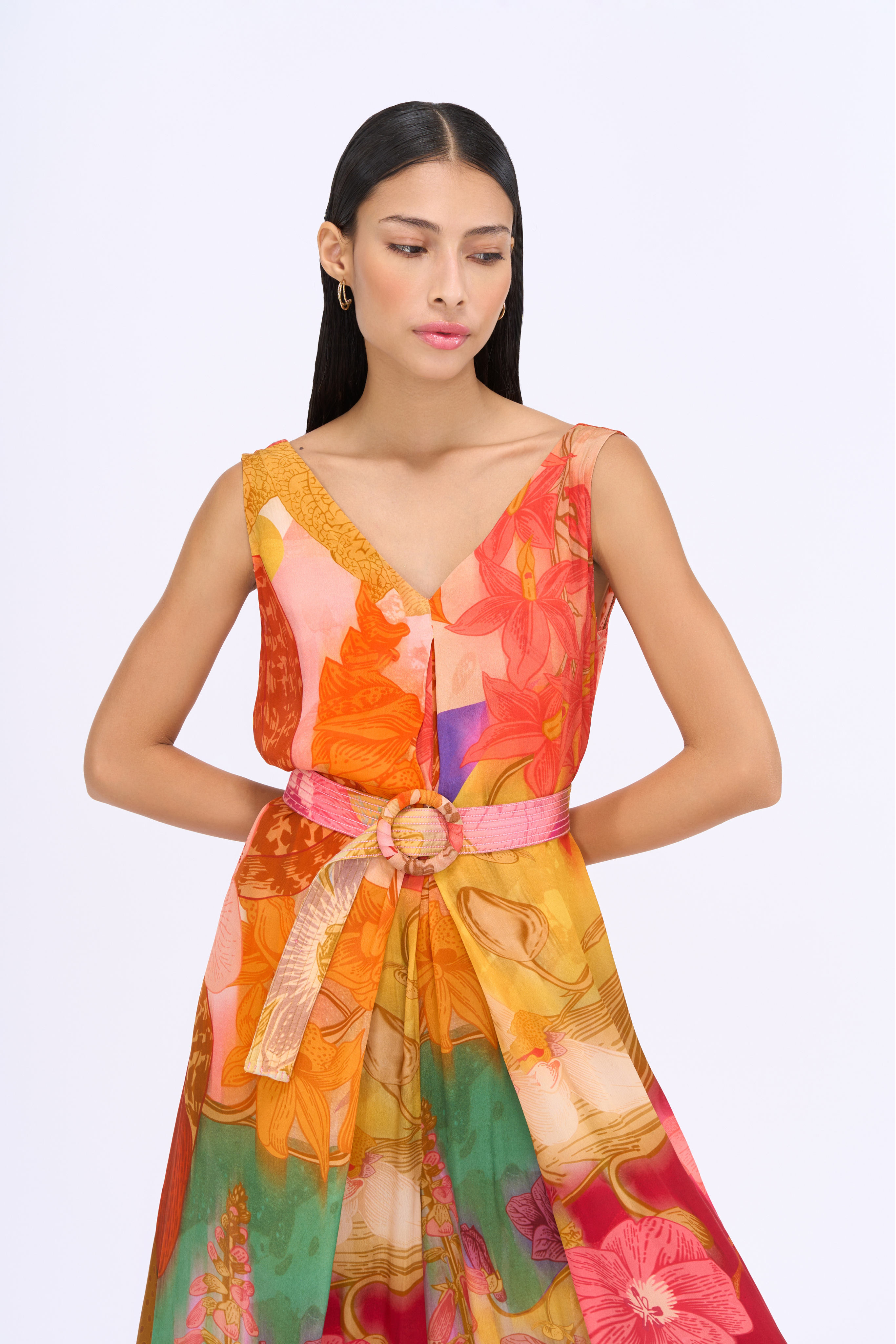 Product Description Inverted box pleat jumpsuit with elephant legs bottom, comes with custom made matching belt.