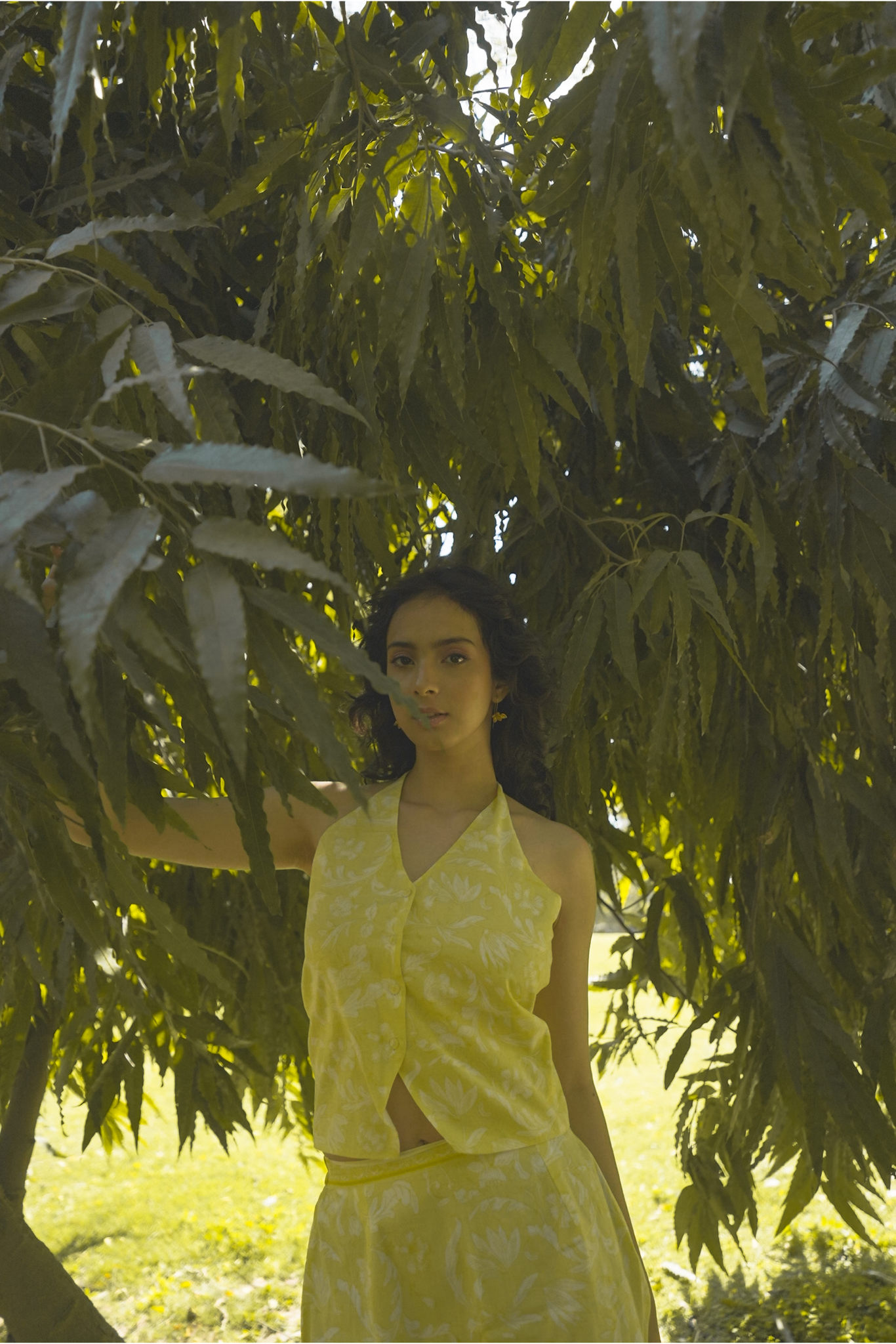 Combining refined tailoring with contemporary style, this two-piece dress set features a structured vest-inspired halter top and a matching mini skirt. The top’s button-front design accentuates the silhouette, while the open-back detail enhances its modern appeal. The mini skirt balances the structured top with a sleek, flattering shape.