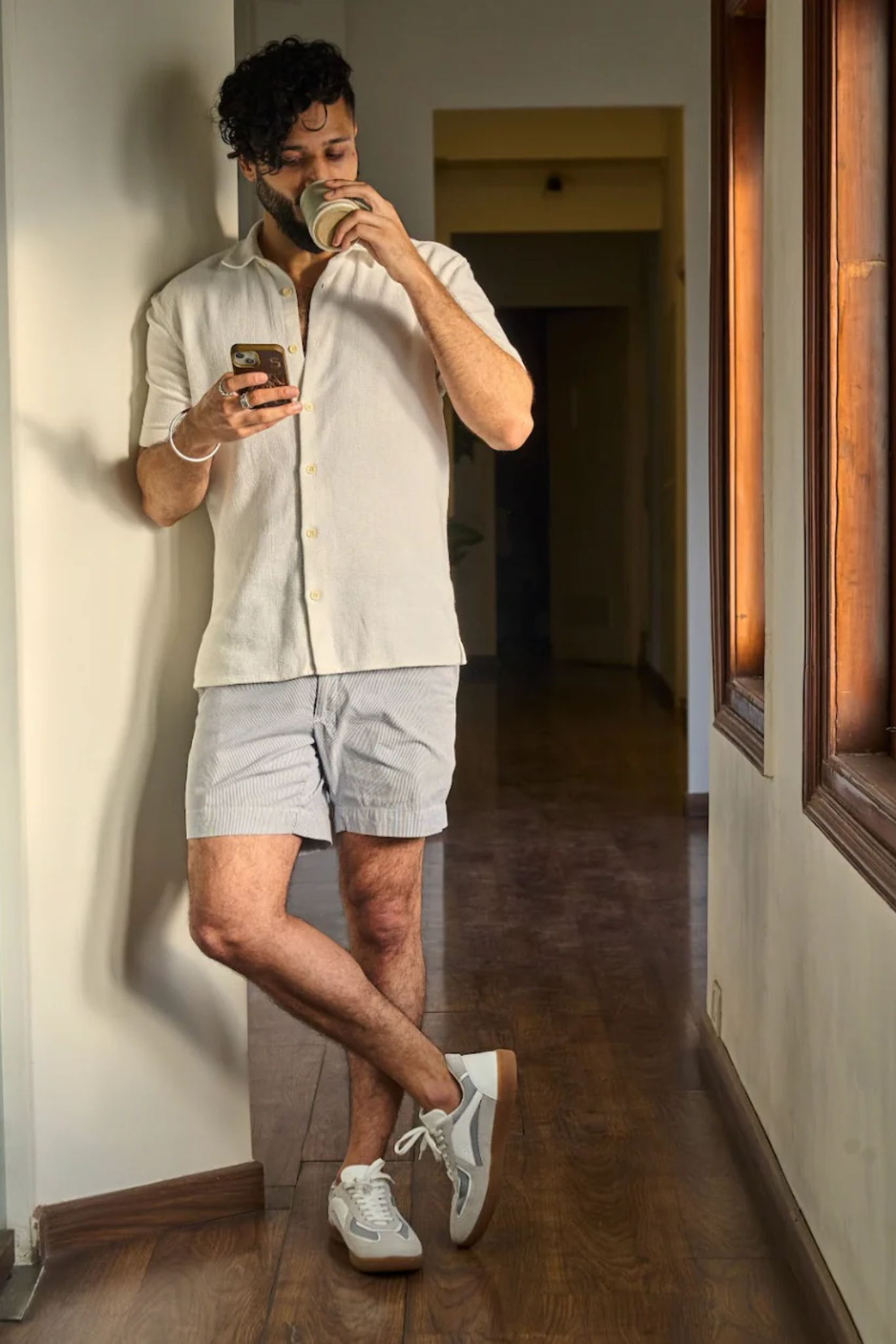 Crisp white salt meets soft, smoky ash. Clean, versatile, and quietly resilient.