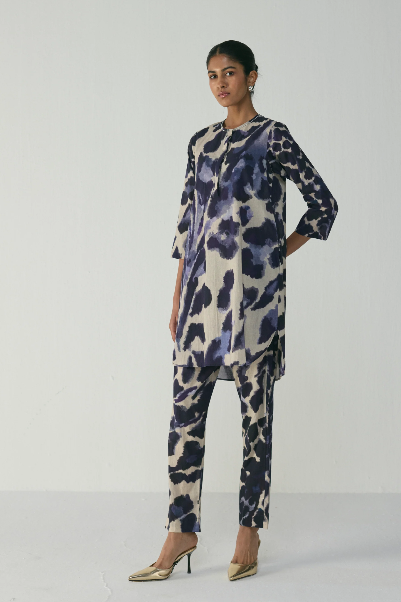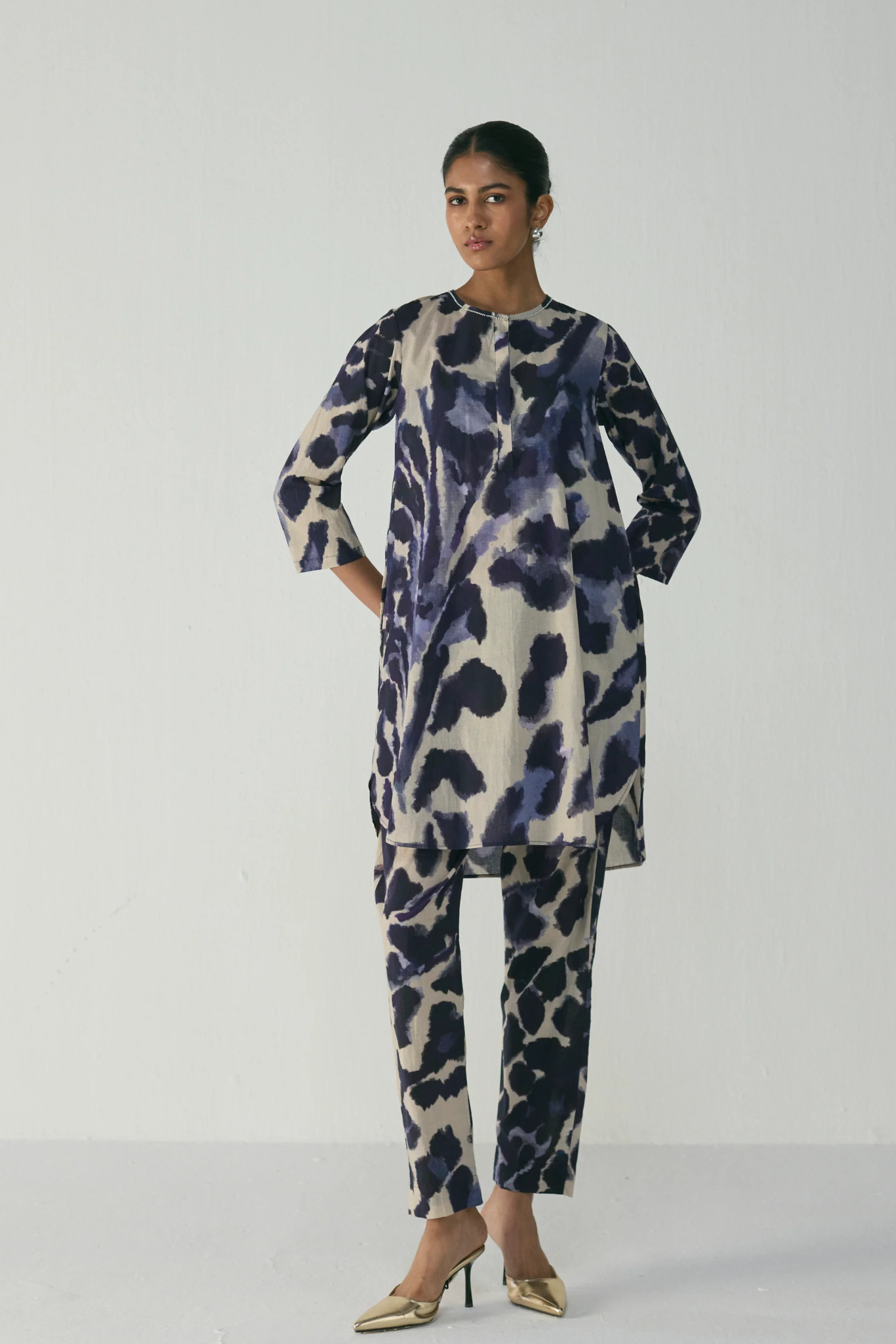 Pair this set with metallic heels or leather flats for a polished daytime look. For evenings, add statement earrings and a structured bag to elevate the ensemble. Layer with a longline jacket or lightweight stole for transitional weather and effortless sophistication.
