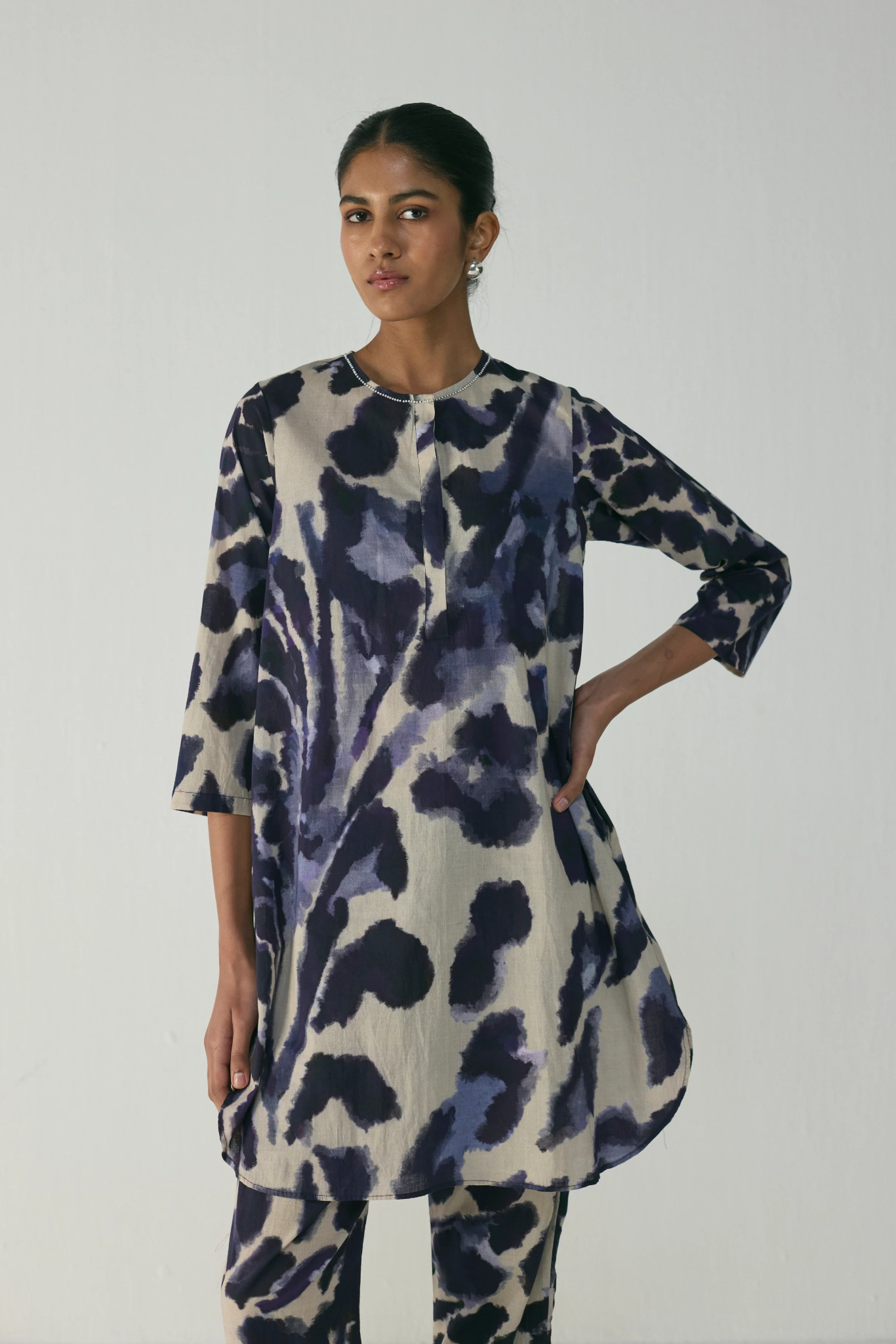 Straight-cut kurta with round neckline and front placket detail