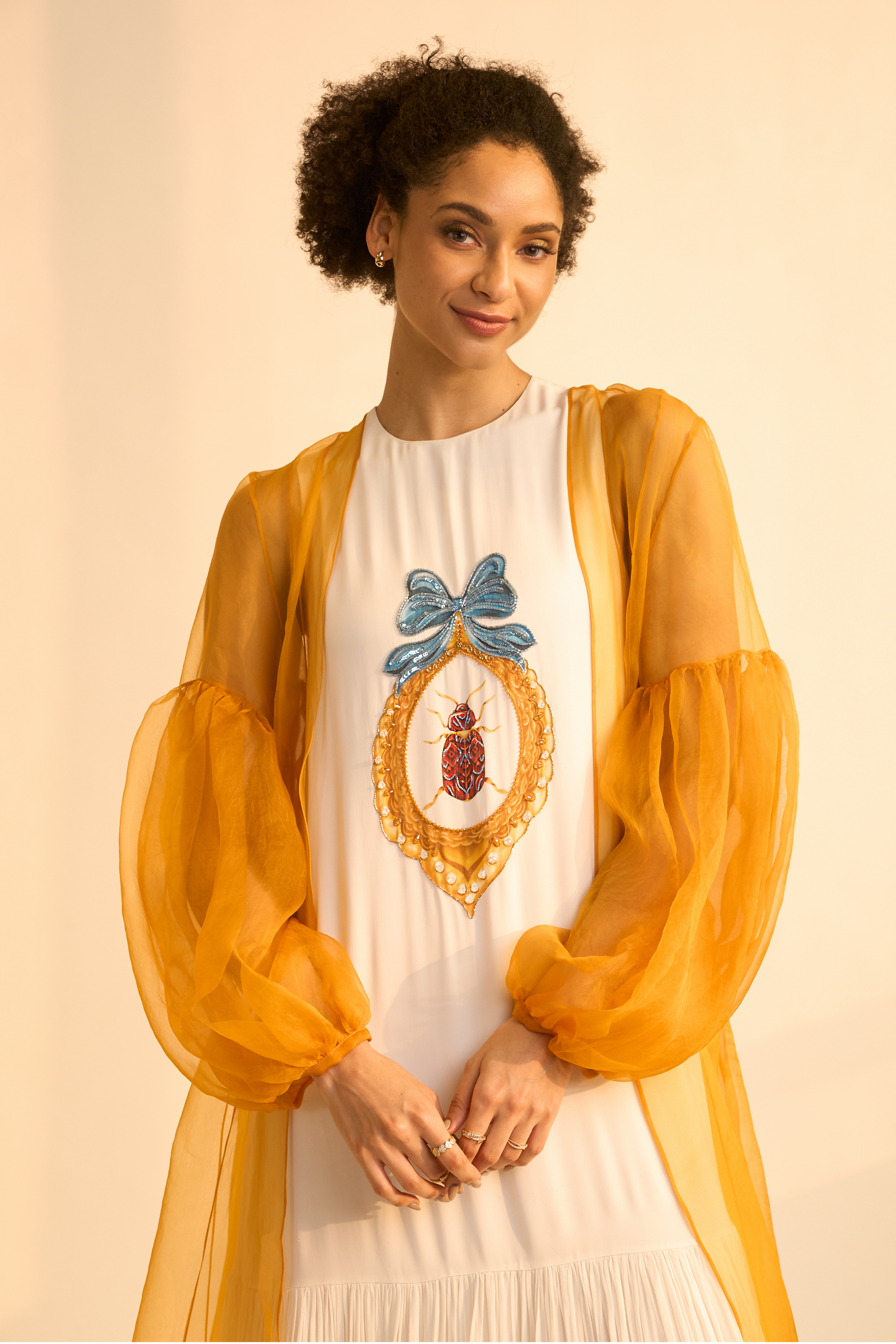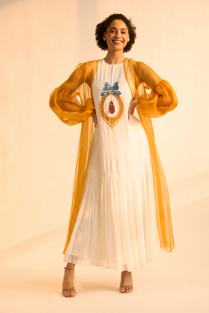Effortlessly elegant this sun glazed delicate mustard duster coat adds a warm pop of color making it look dressy, for any of your day parties. Create a mesmerizing presence and stand out in the most graceful and captivating way.