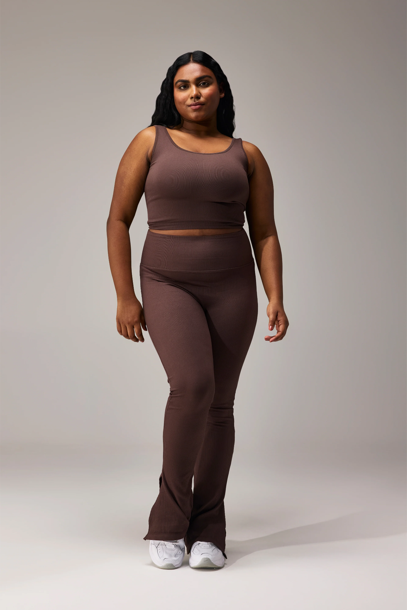 SEAMLESS FLARE PANTS WITH SLIT - COFFEE