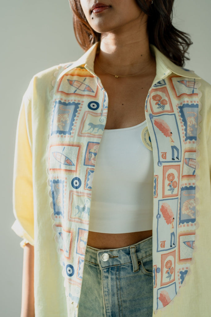 This one’s not just a shirt—it’s a whole feeling. Cut in our signature Barse cover-up silhouette , this butter-yellow beauty is sunshine stitched into fabric.