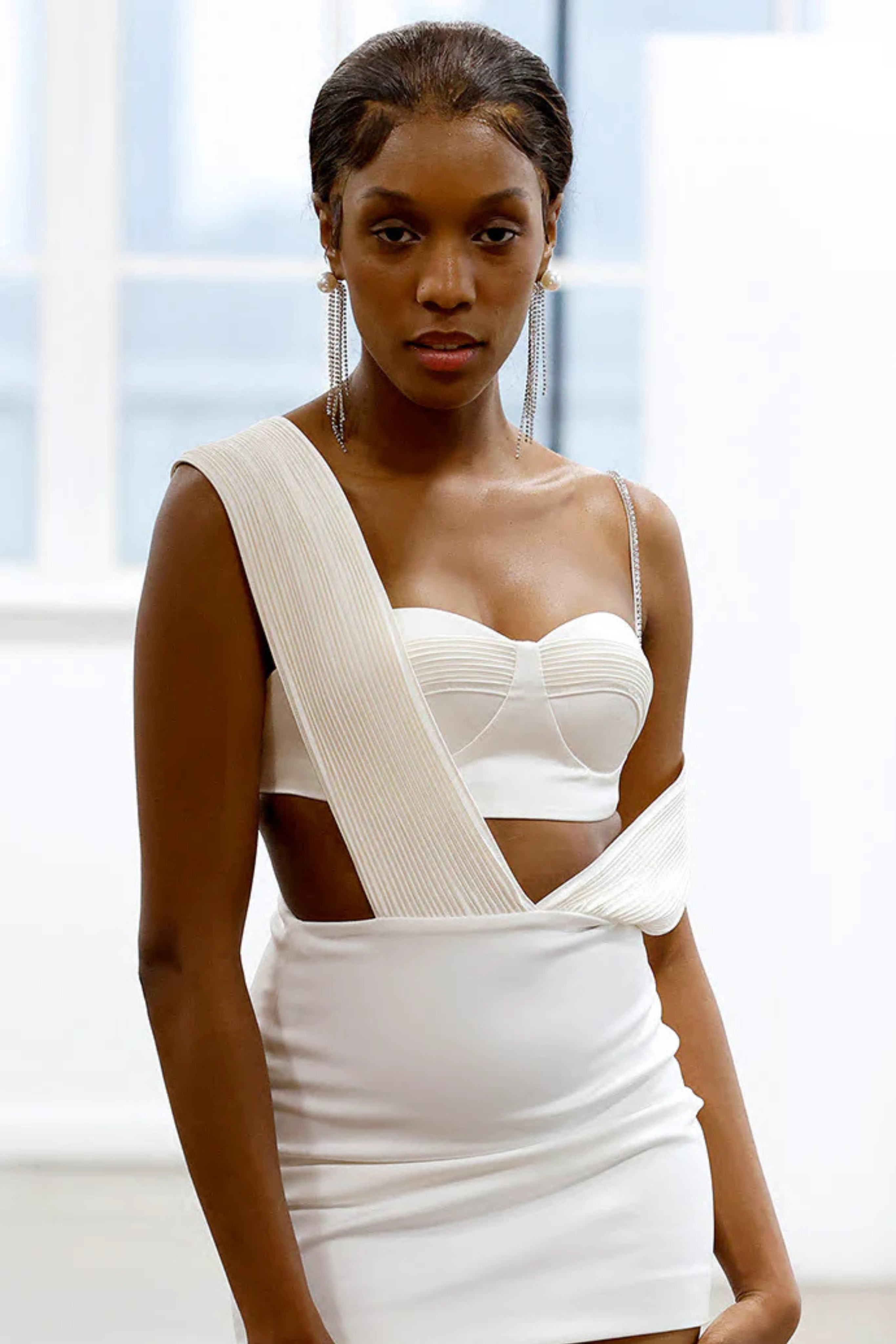 Featuring stylized lines on the cup, hook and eye opening at the back & rhinestone straps. Fit