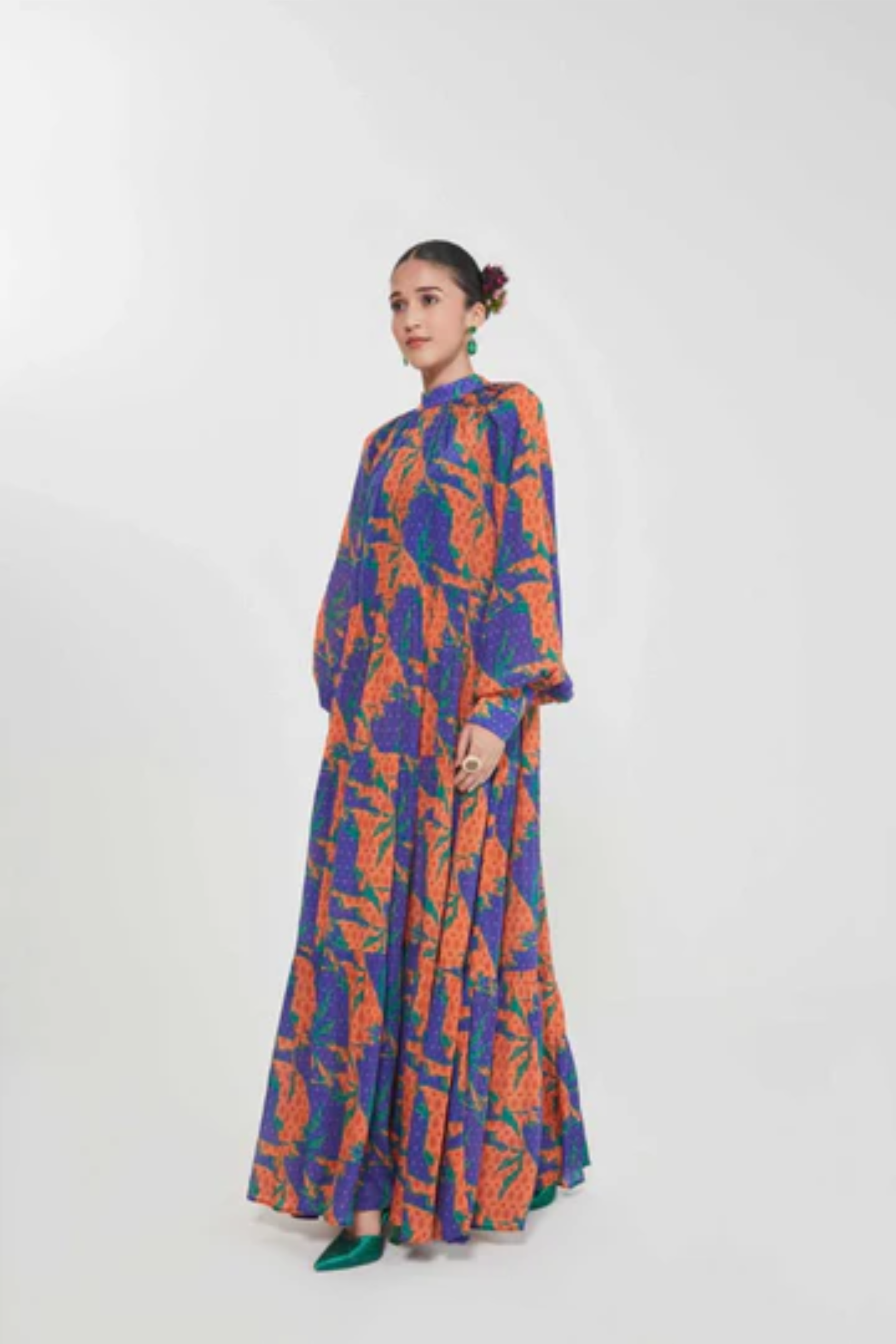 Description Sufi Tessellation Pattern Printed Long Tiered Dress Bishop Sleeves Product Code