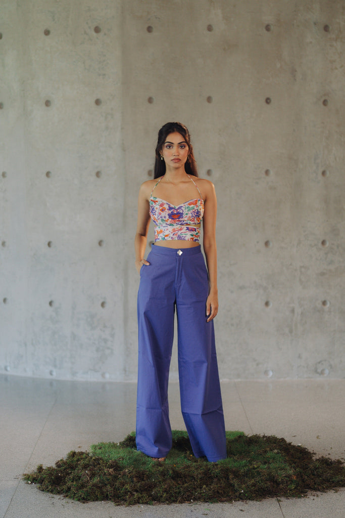 The Electric Blue Pants feature a striking blue hue that adds a vibrant pop to any outfit. The high-rise waist cinches in for a flattering fit, while the wide-leg silhouette offers a sophisticated flow that effortlessly elevates any basic blouse.