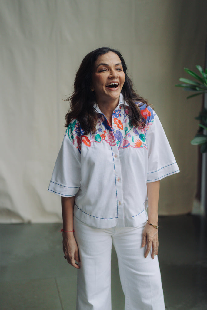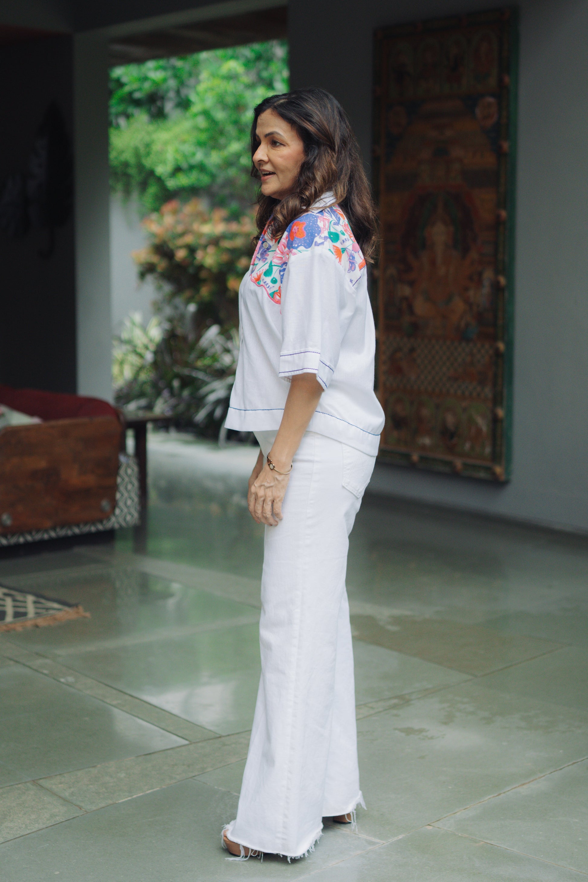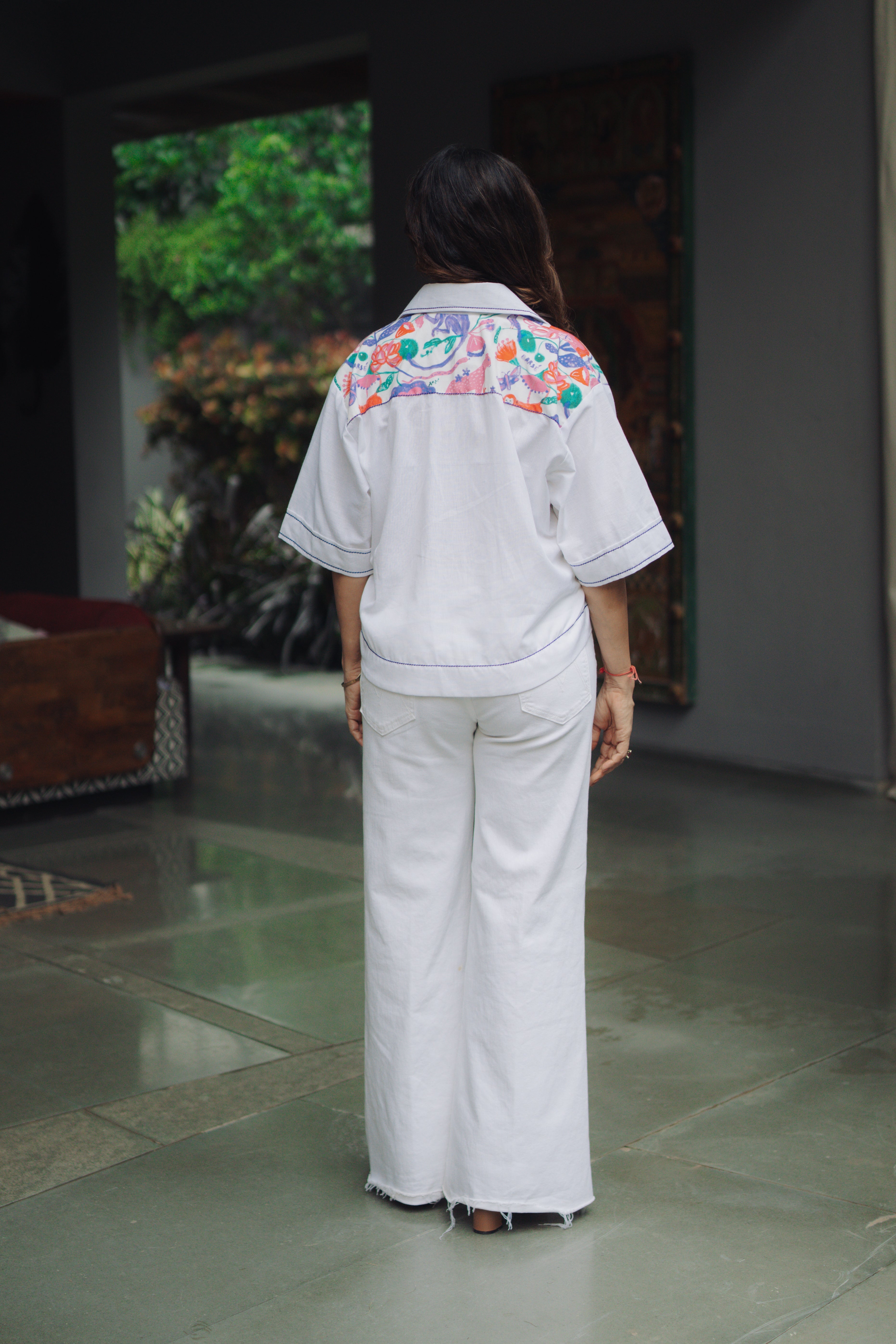 This fun and edgy white shirt combines versatile style with a touch of print to add a little ‘oomph’ to your everyday life. It features a refined patchwork design on the front and back and is crafted from premium, breathable fabric for comfort and sophistication. This shirt is perfect for any occasion and sure will make you stand-out in any scenario!