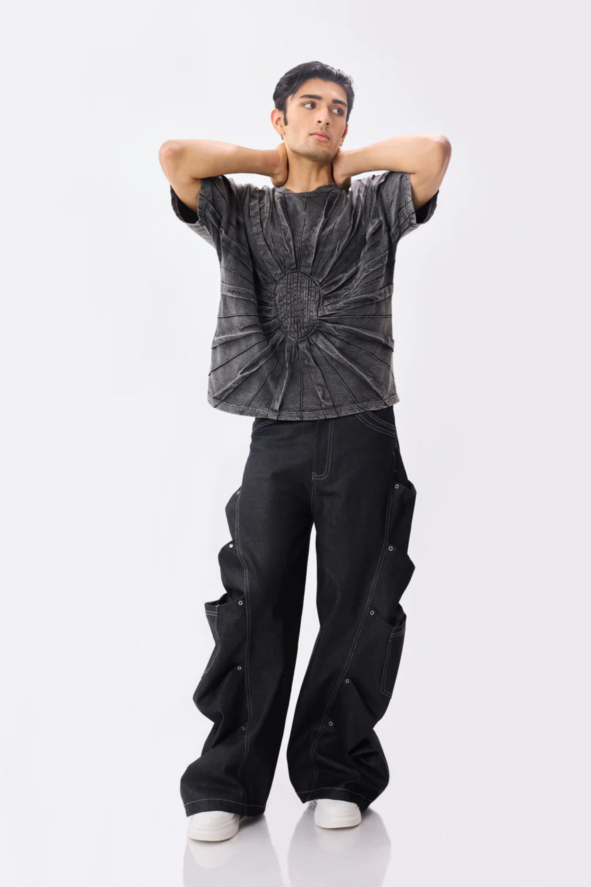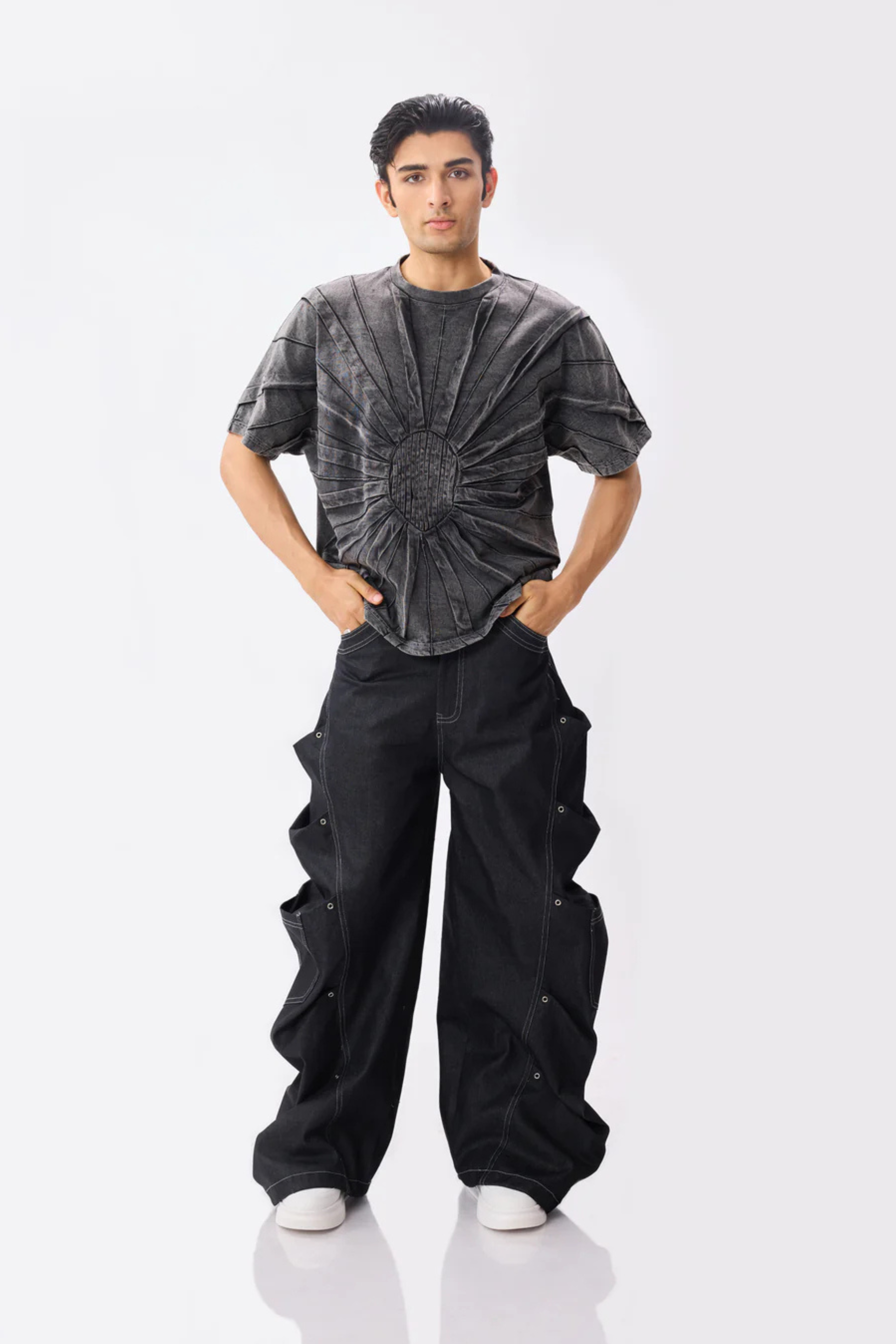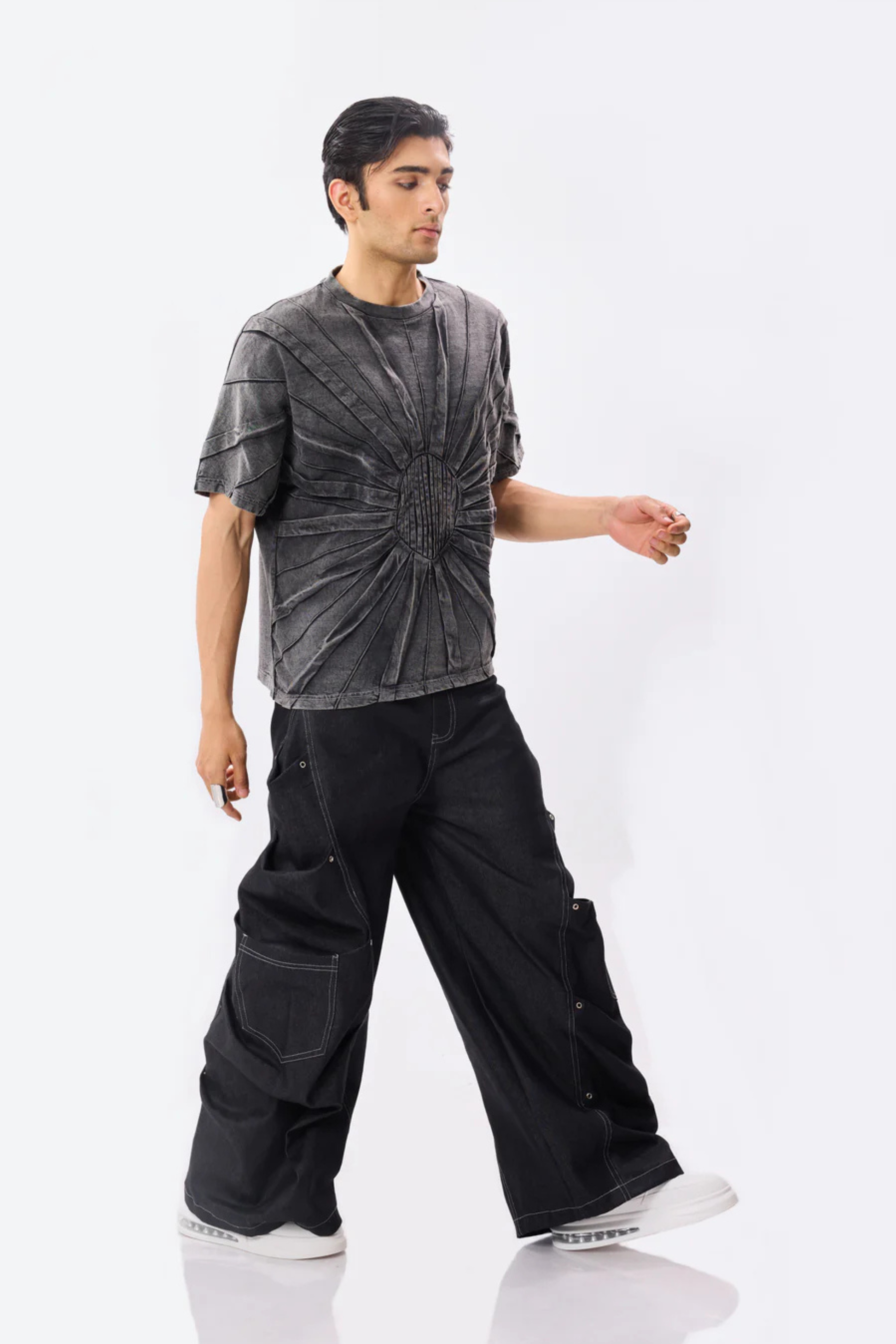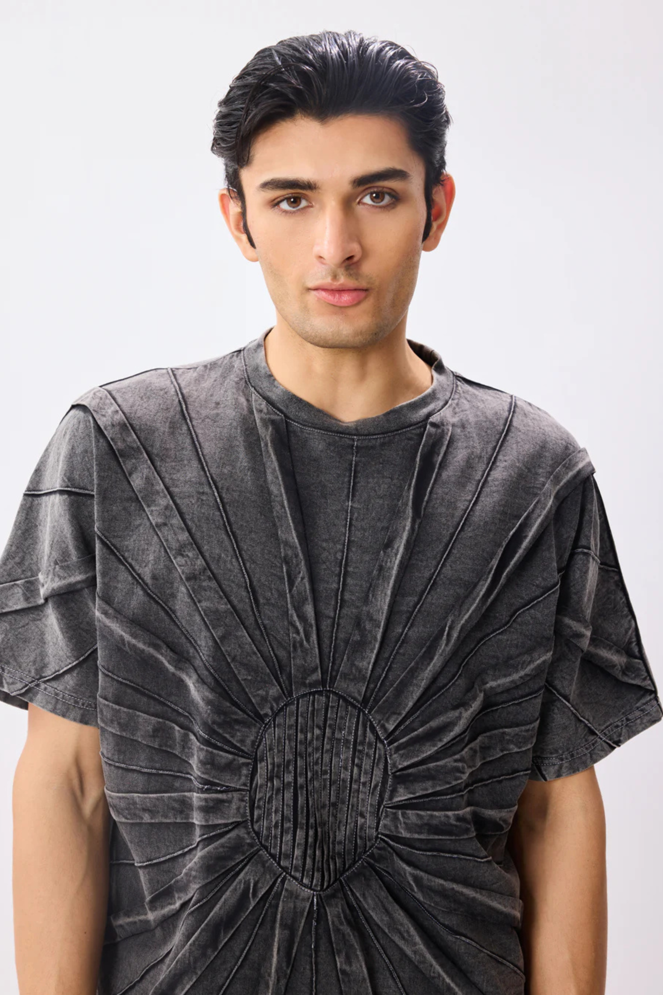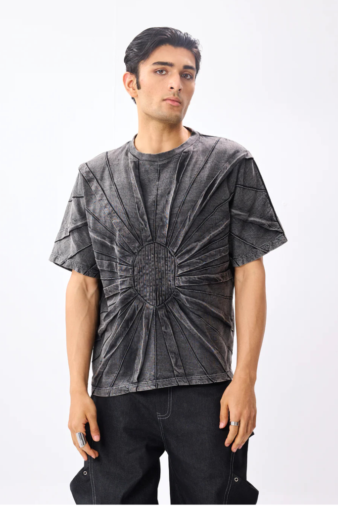 T-Shirt Product Description The Almighty Tee- our take on a classic tee, adding our very own manipulation techniques to make it “ALMIGHTY”. With a combination of pleats and pintucks, the shape and formation of this tee resembles a sun, it’s rays passing through your whole body when you put it on. Acid washed to highlight the details even more. Product Code