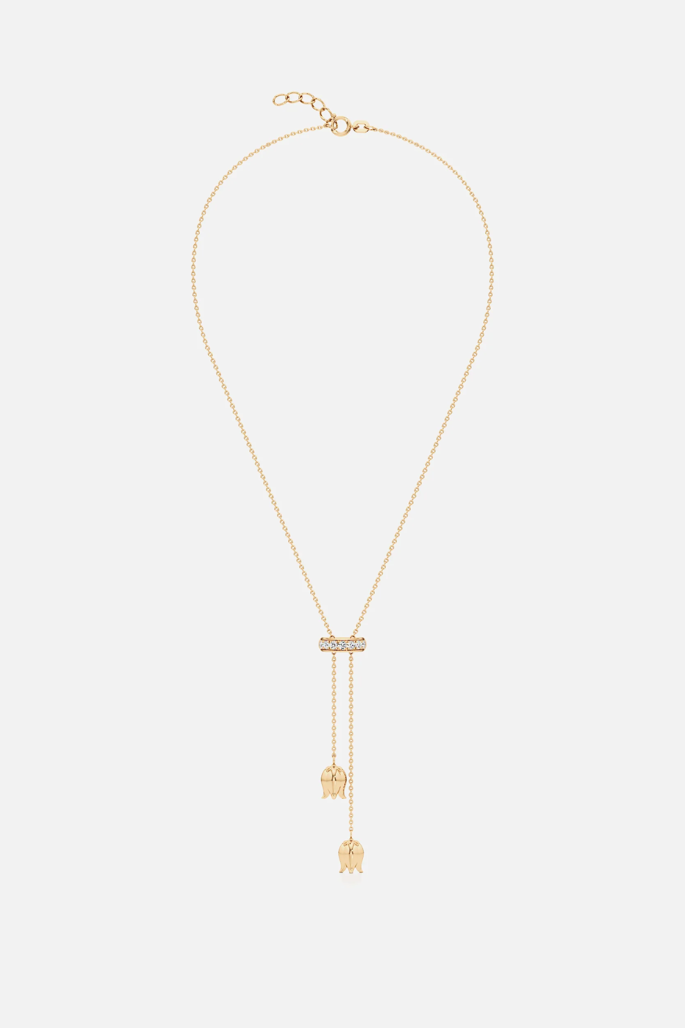 Elevate your style with our chic Tulip Lariat. Its sophisticated design and fluid lines creates a modern, elegant look and offers versatile styling options.