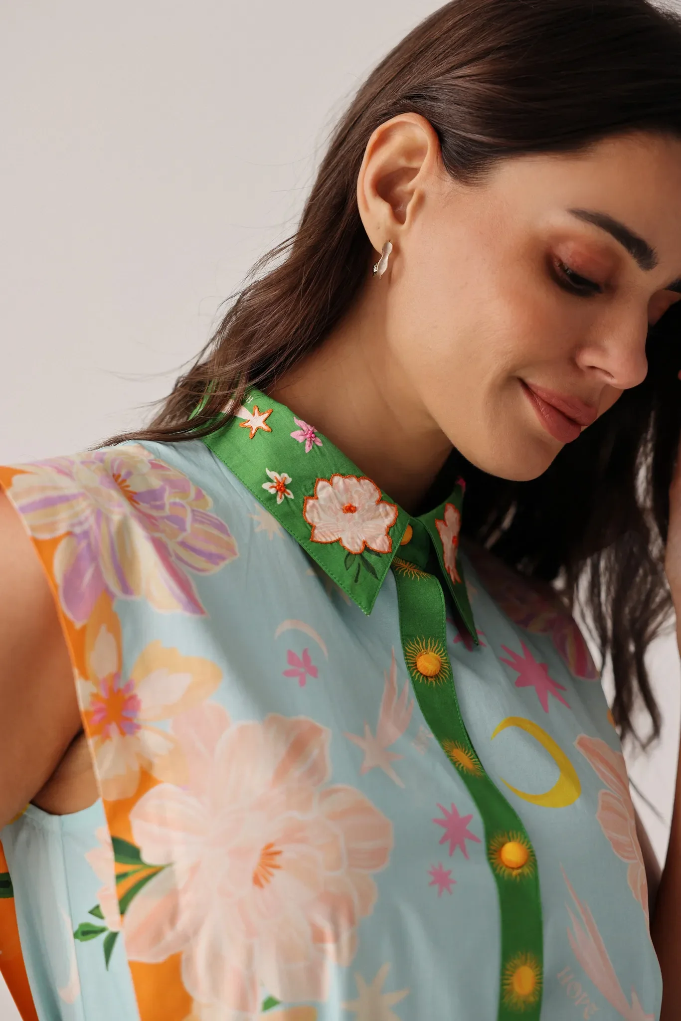 Delicate embroidered detailing along the collar