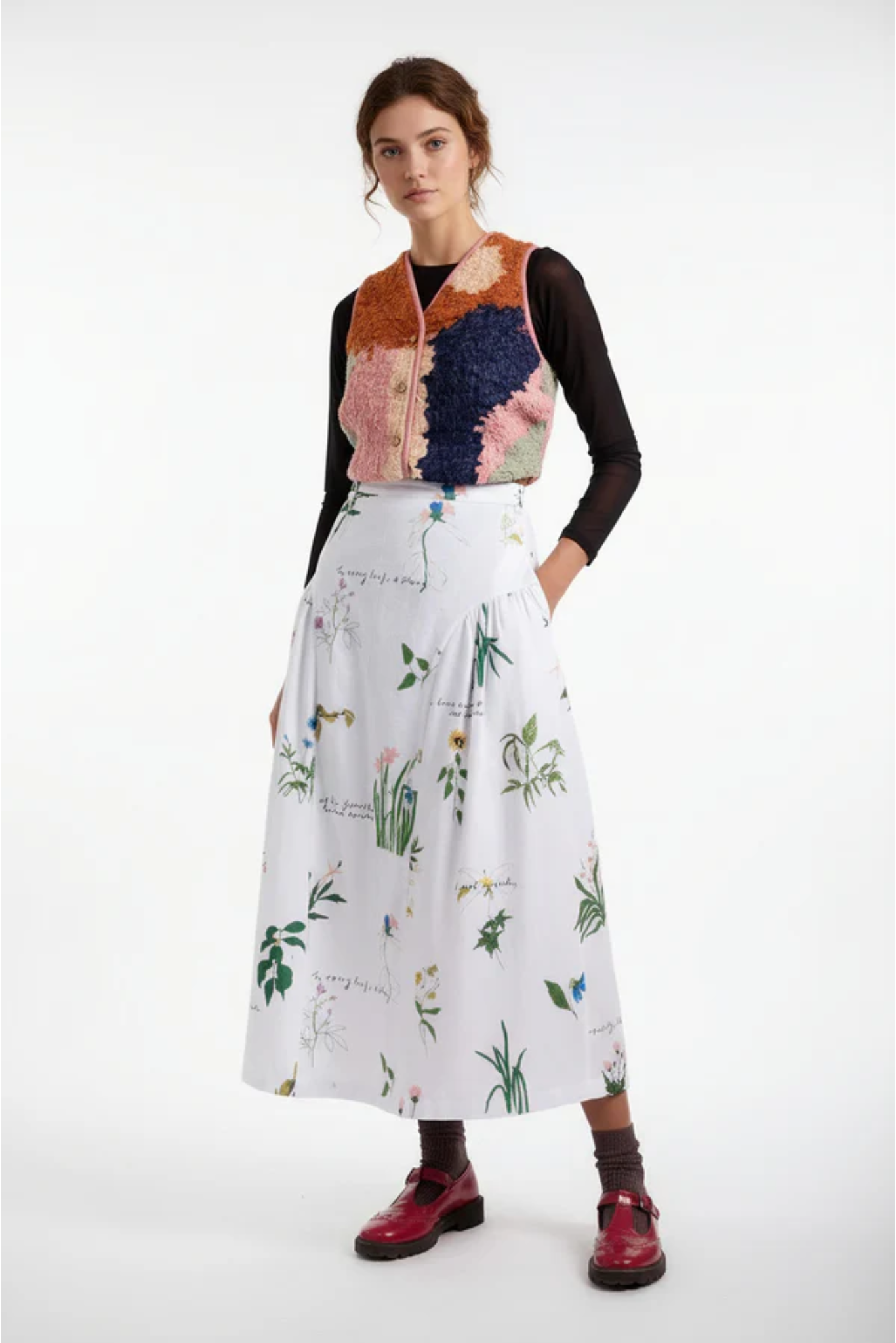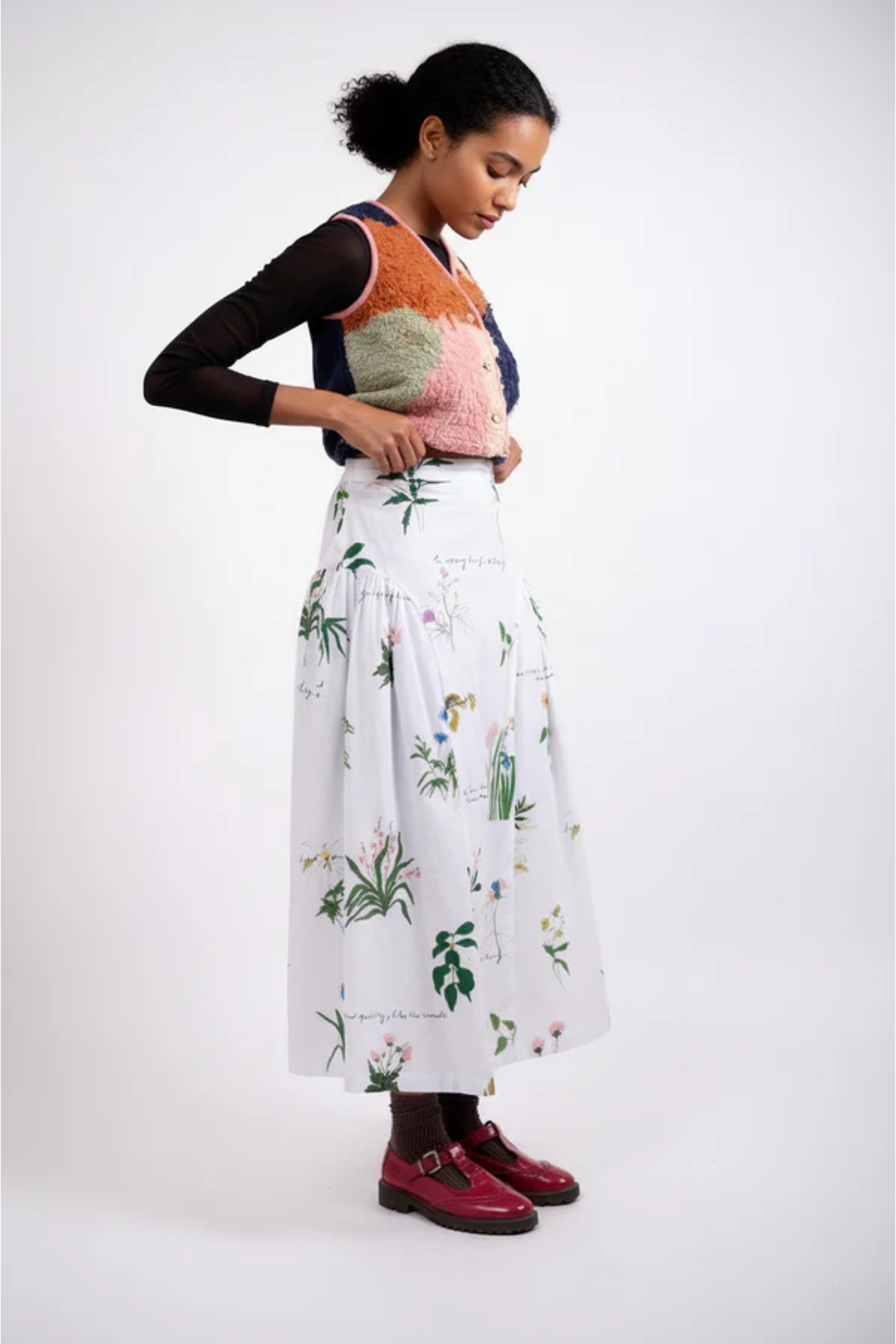 A breezy and effortless essential, this A-line skirt is crafted in soft linen with a delicate floral print. Featuring side pockets and gather detailing at the front, it combines functionality with subtle texture for a flattering silhouette. Lightweight and breathable, the skirt is perfect for casual outings, brunches, or relaxed weekend styling.
