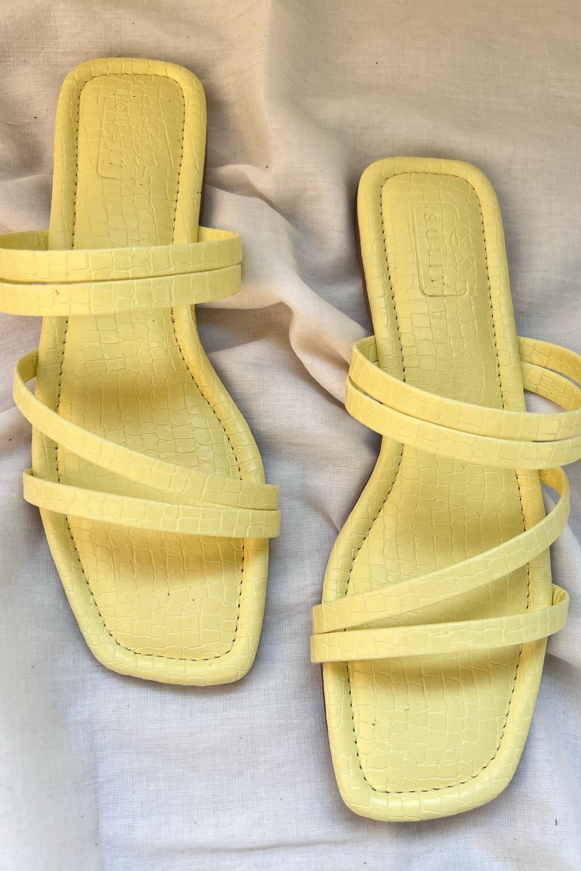 Add a pop of sunshine to your shoe game with our Lemon Yellow Flats! Bright, bold, and full of personality-these sandals are your go-to for summer getaways, beach brunches, or any day that needs a dose of joy.